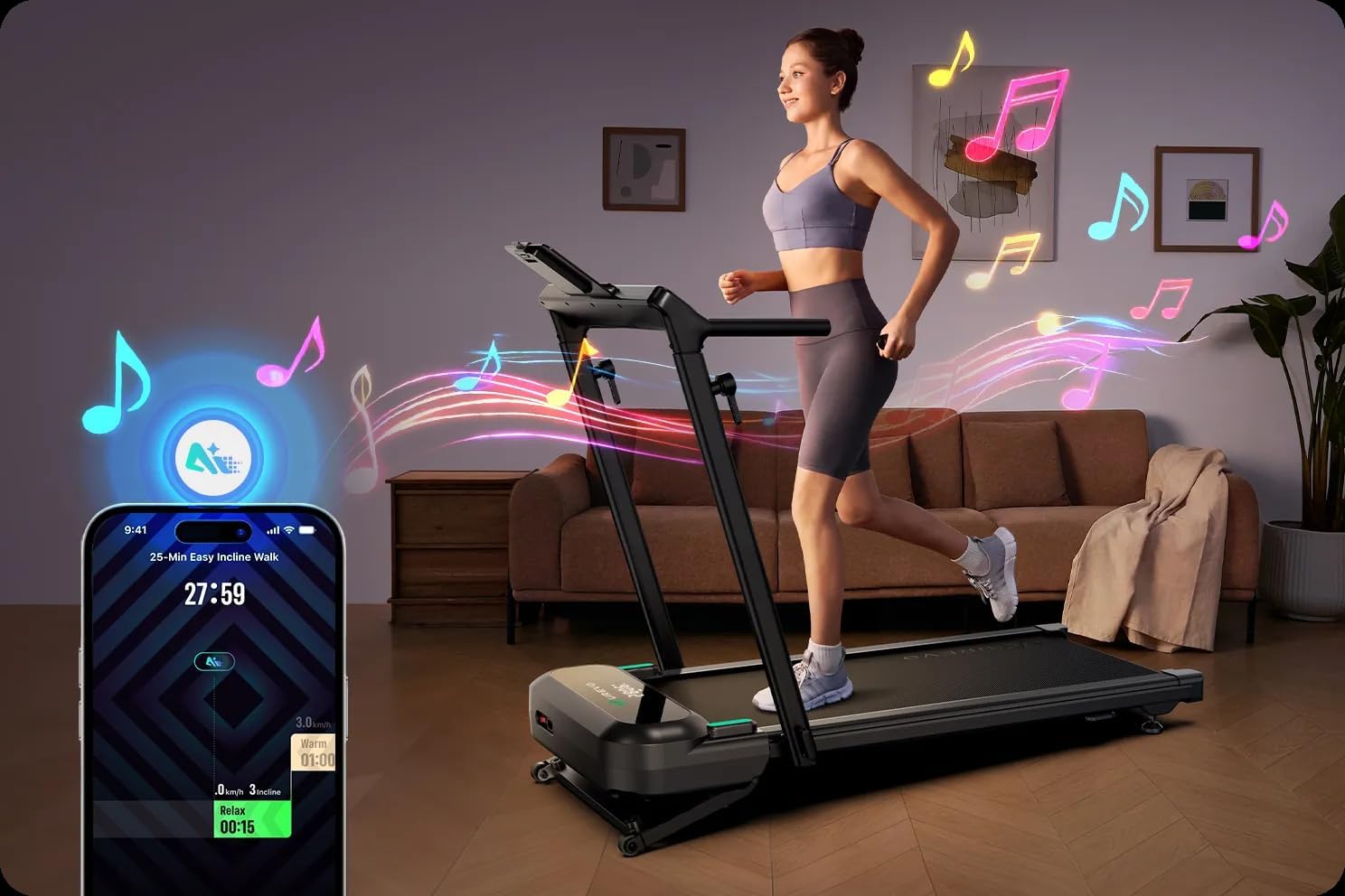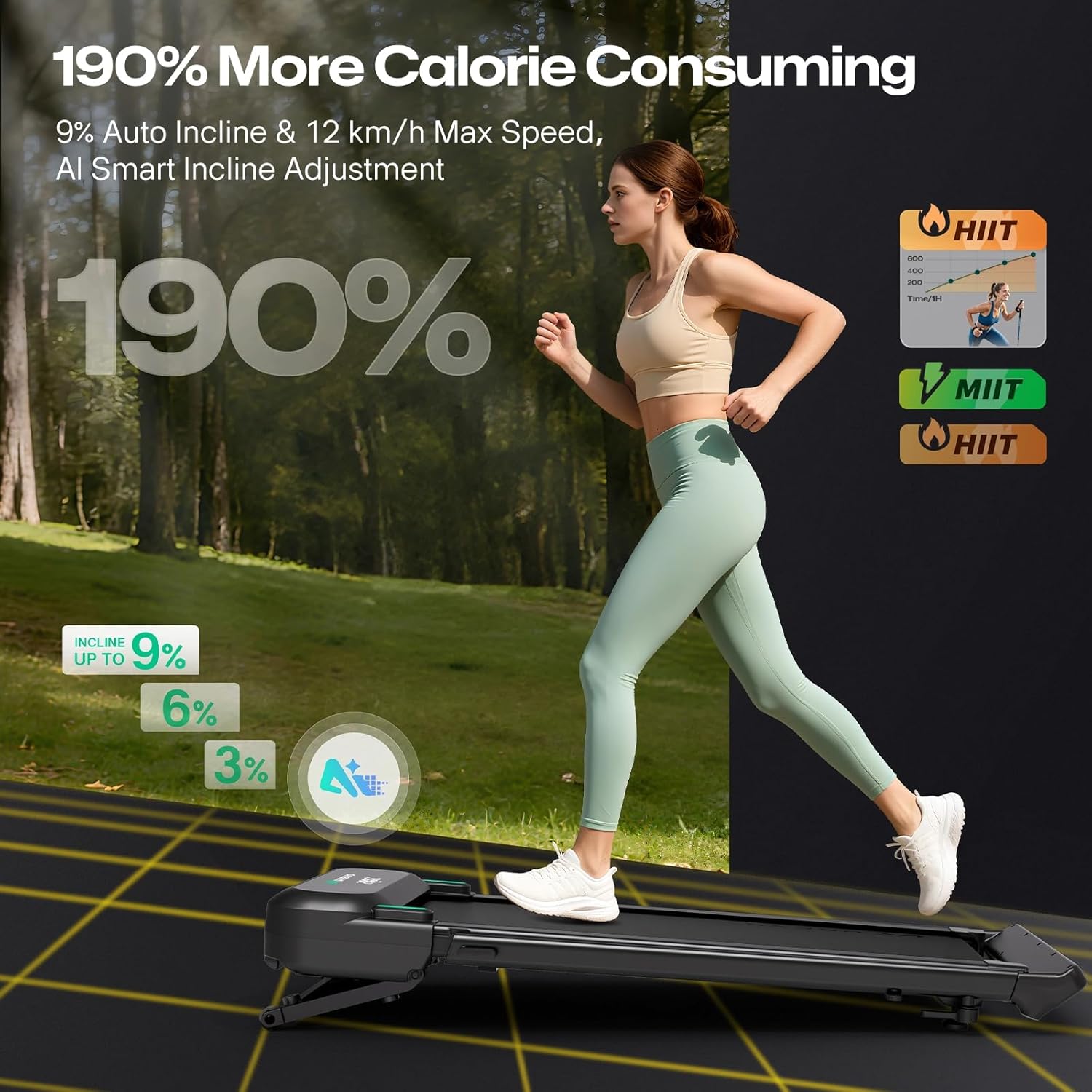 Home Fitness Center: Pro-level treadmill with 9 level 9% auto-incline and 400 lbs superior load capacity, move free and burn calorie faster. You can automatically adjust the incline level with a button to burn 3 times more calories.