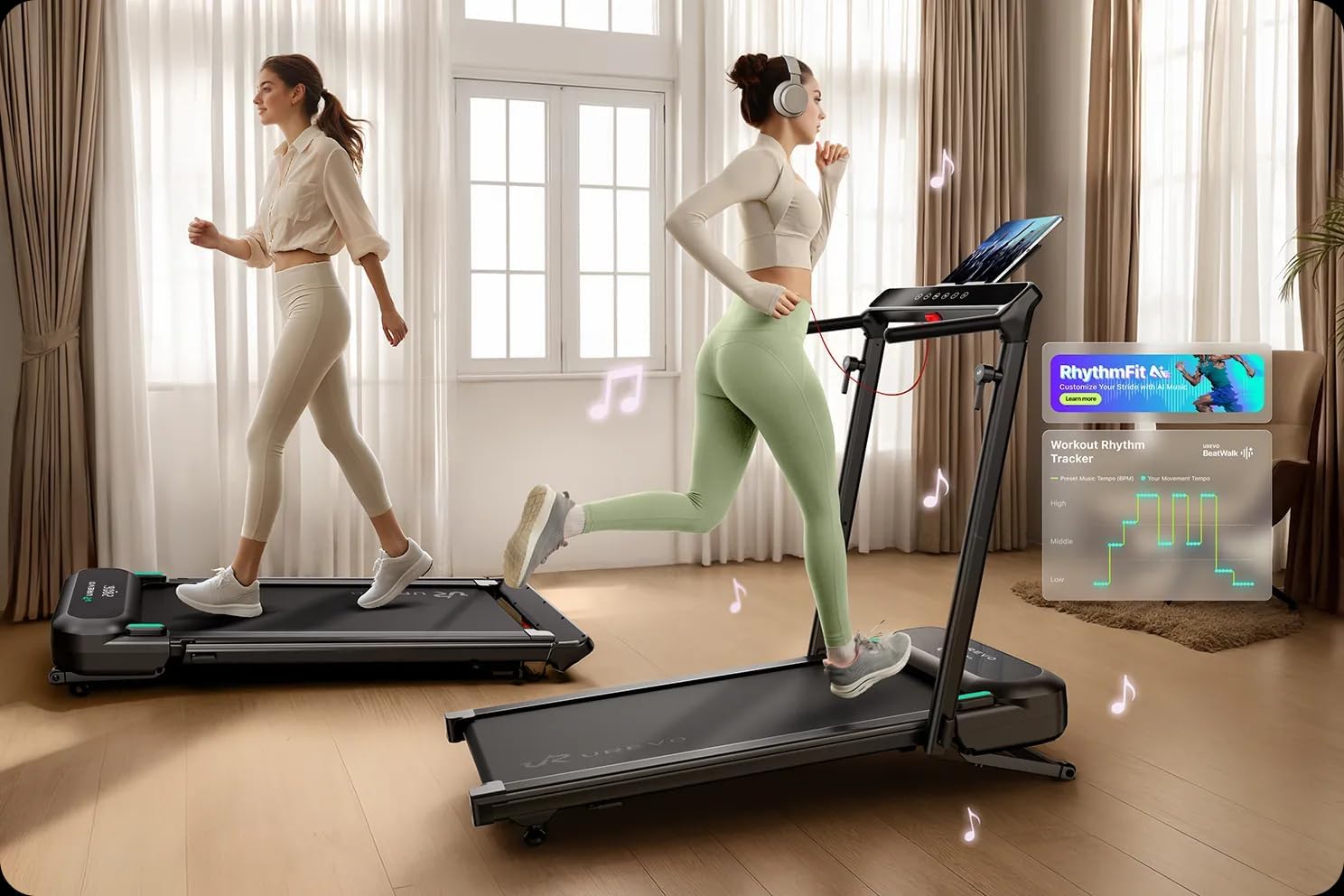 Smart Controls with Real-Time Feedback: Track your workouts your way. Both models connect with the UREVO App to record time, speed, distance, and calories burned. You’ll also see your stats instantly on the hidden LED display at the front of the machine. Control is simple and flexible – use the included remote or adjust through the app.