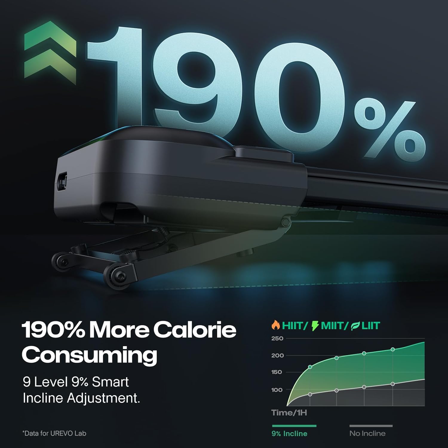 【Efficient Calorie Consuming】9 Level 9% auto incline with a variety of HIIT programs make your home hiking more efficient and convenient, increasing the calorie-burning efficiency by 190%.