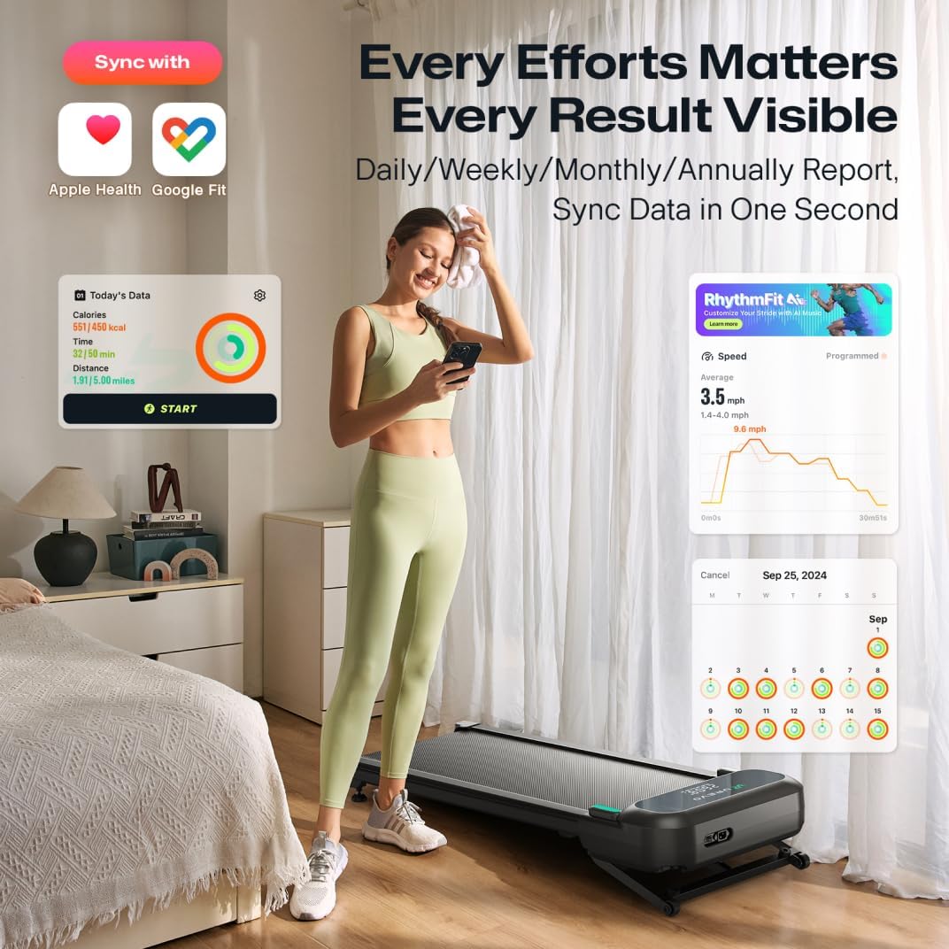 【AI Smart Fitness】The UREVO APP contains rich contents including World Tour, RhythmFit, Competitive Mode, HIIT Programs and Check-in Activities, making your home exercise no longer boring.