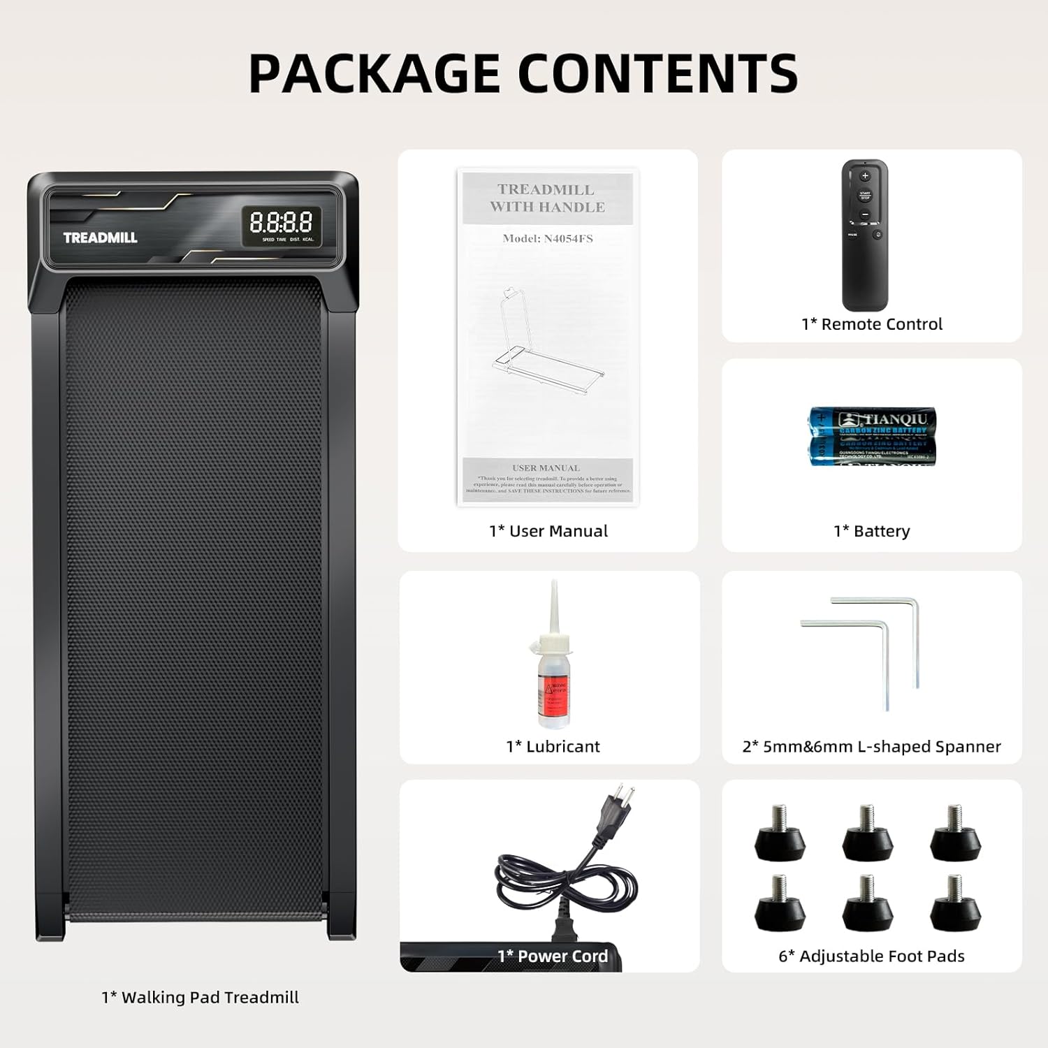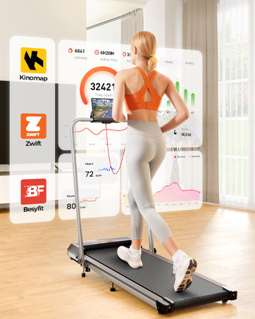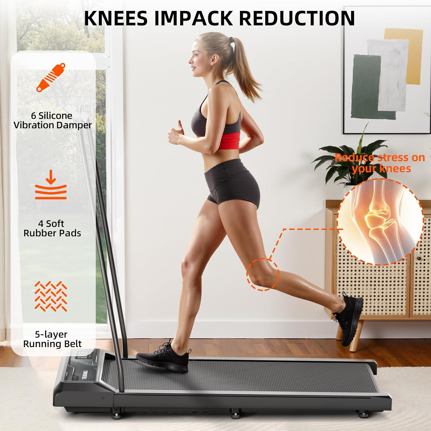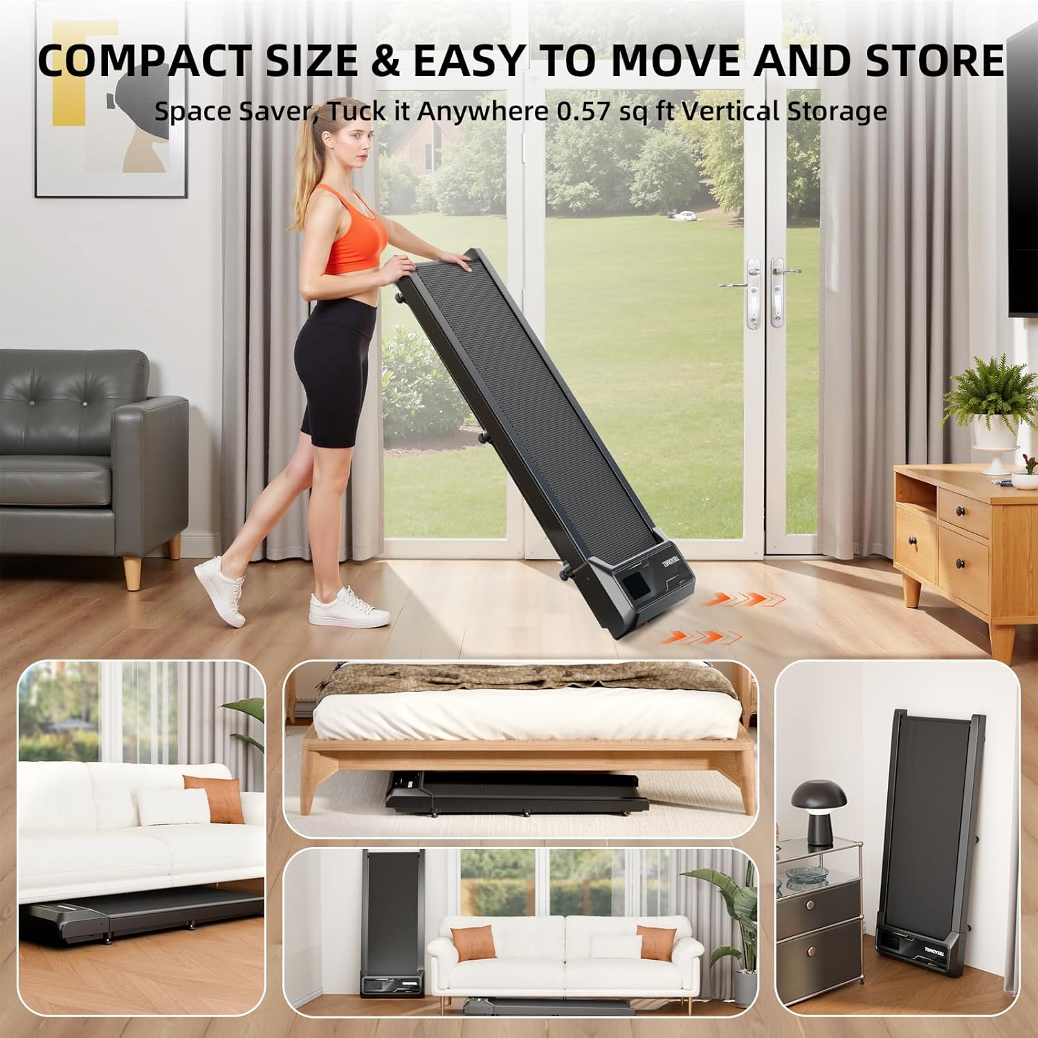 Non-Assembly and Space Saving: Measuring just 4.3 inches thick, ready to use right out of the box, this portable treadmill features built-in transport wheels for easy movement and a compact, space-saving design. Effortlessly store it under your bed or sofa, used for small spaces and keeping your home clutter-free