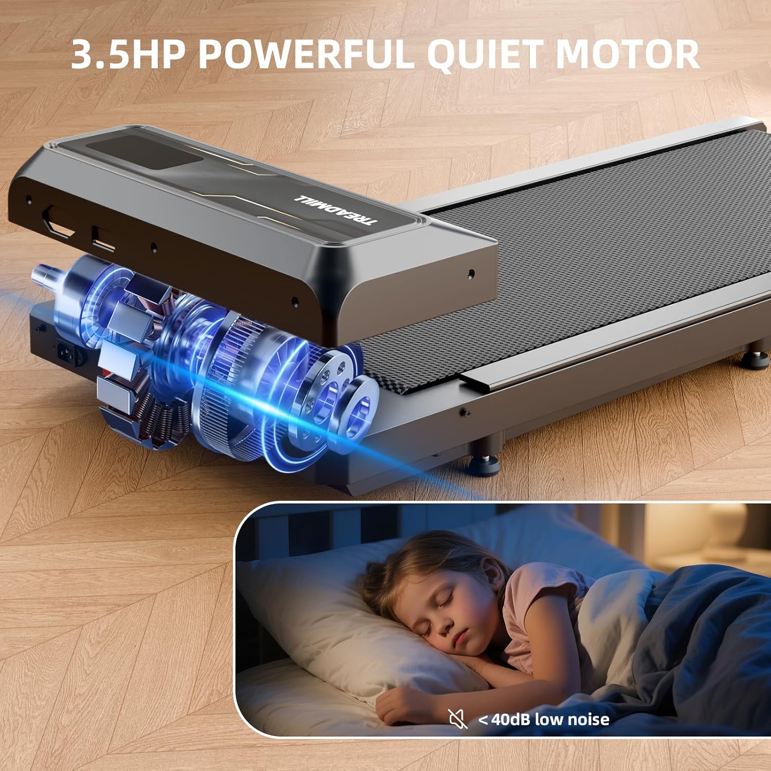 2.5 HP Powerful Motor: With a high-torque 2.5 HP brushless motor, this under desk treadmill delivers powerful performance while operating below 40 dB. Experience smooth, whisper-quiet runs that won’t disturb family members or downstairs neighbors, fit for late-night or early-morning workouts