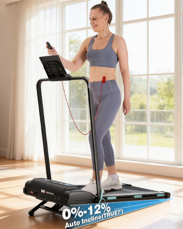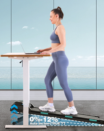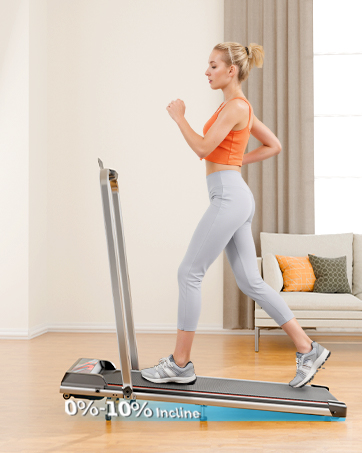 Adjustable 10% Incline: Maximize your calorie burn with walking pad with incline featuring a 0%-10% manual incline. By simulating uphill climbs, this treadmill intensifies each workout, helping you achieve greater fitness results in less time, used for efficient home exercise routines