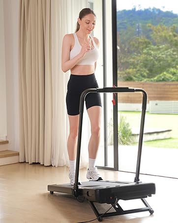 LED Display & Remote Control – This 1.5 times larger LED display clearly shows your speed, distance, time, calories, and incline slope, helping you track and record the data and adjust your workout plan in real time. Remote control with a lanyard helps wrap around your wrist and the magnetic remote control slot on the side of the treadmill can effectively prevent its loss. The soft rubber panel design stabilizes your phone or tablet on the treadmill during workouts.