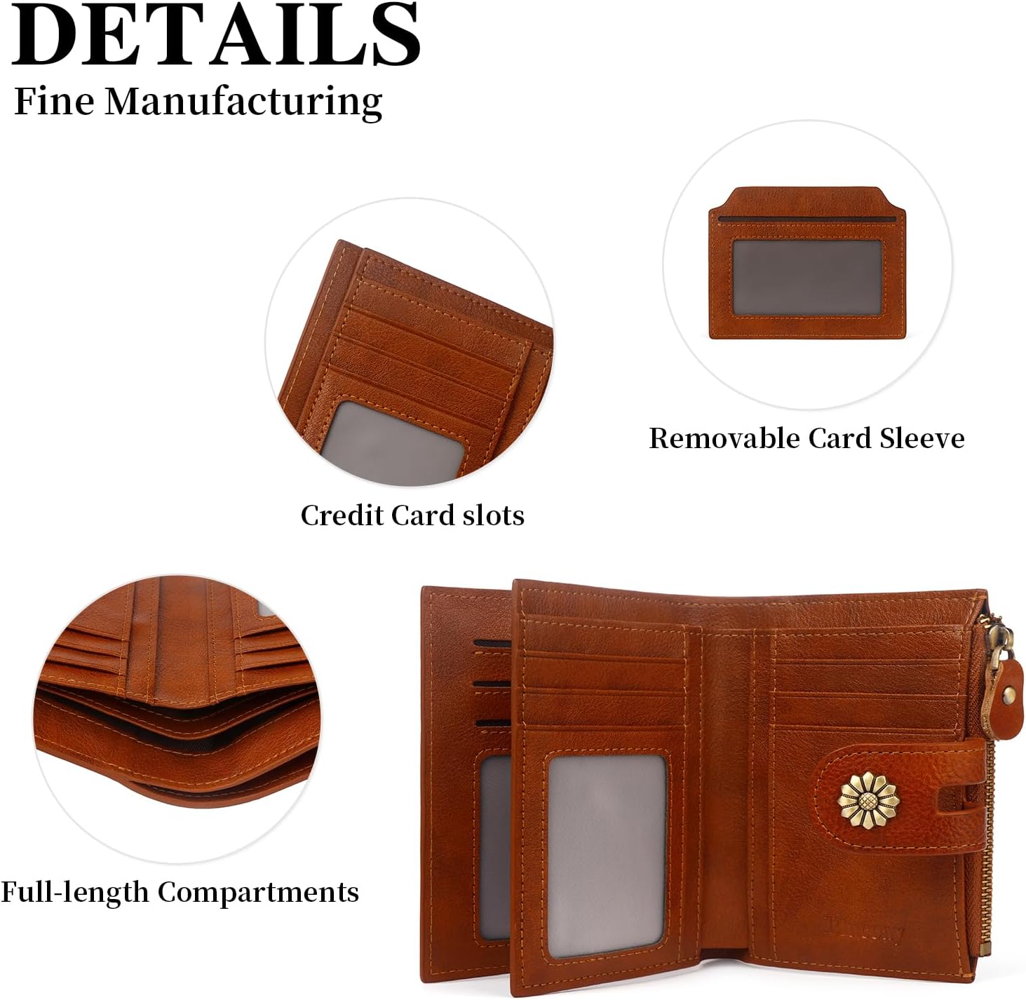 Wallet Women,RFID Blocking Leather Womens Wallet Bifold Compact Card Holder Small Wallet for Women with Removable ID Window Brown
