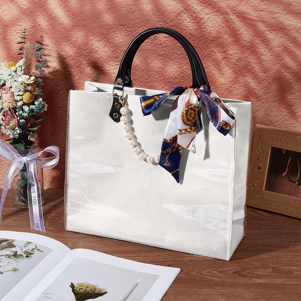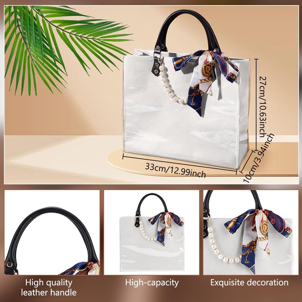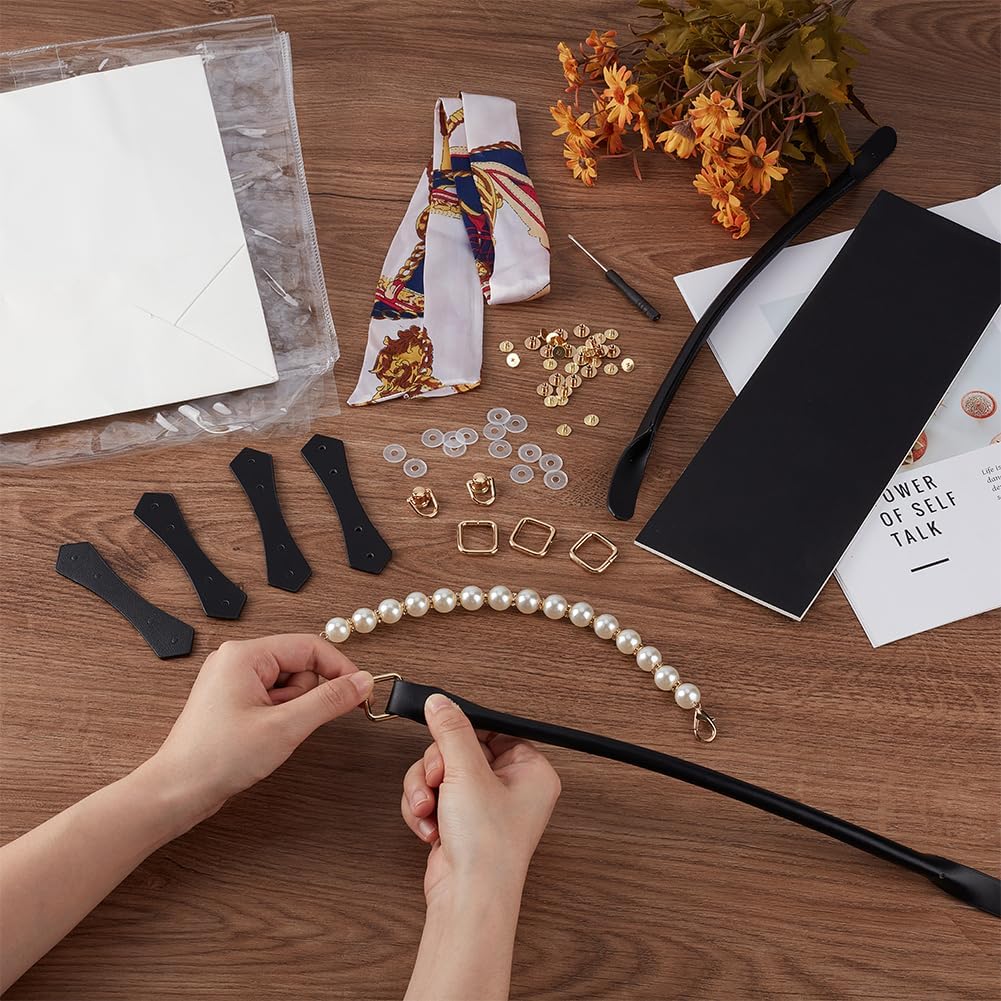 Complete Bag Kit: Complete handbag making supplies to make your own tote bag, include 1*clear plastic bag, 1* paper bag, 1*handbag bottom, 1 pair of handbag handle, screws, pearl chains, ribbons, and more, all in a package