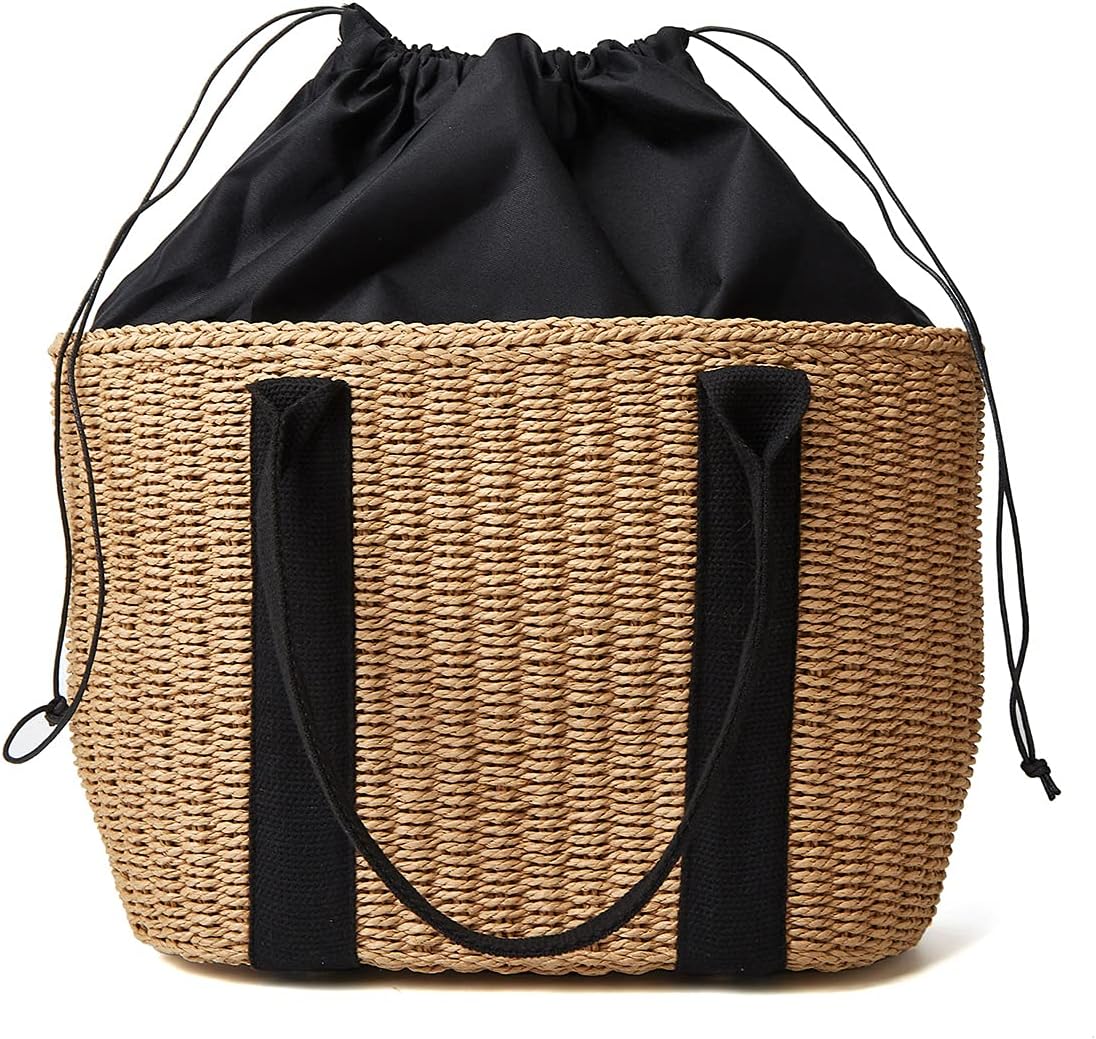 The straw beach bag is casual style, lightweight and soft. Perfect for summer travel, beach party.The stylish tote bag will make your cellphone, cosmetic and other accessiories well organized. Much more elegant and stylish when you use it.It is suitable for travelling, beach, daily use and so on; Handy convenient. This bag brings nature, unique and chic.Straw handbag tote bagSummer beach purseHandwoven bags purseNatural straw material outsideSoft poylester liningDrawstring closure