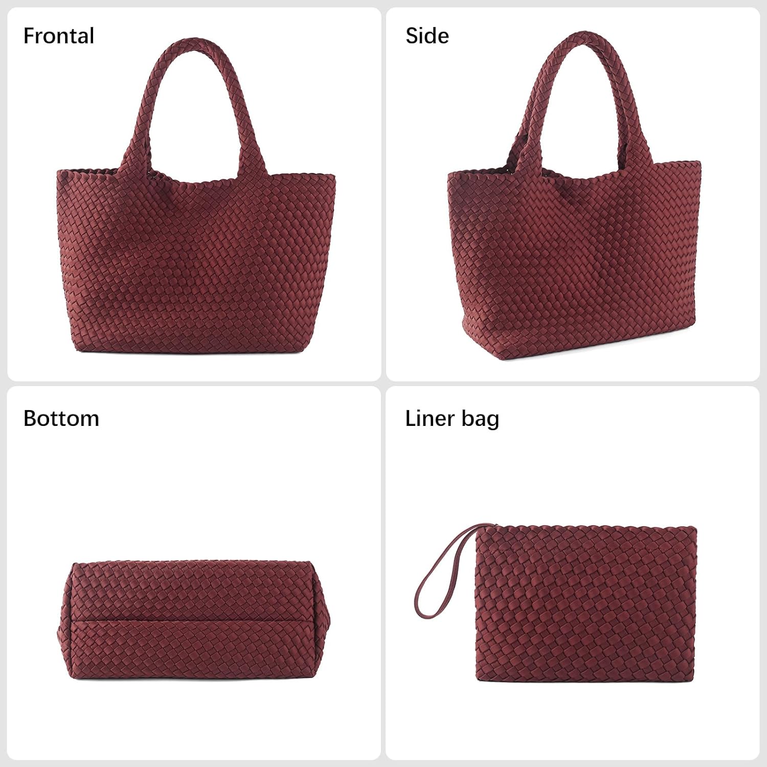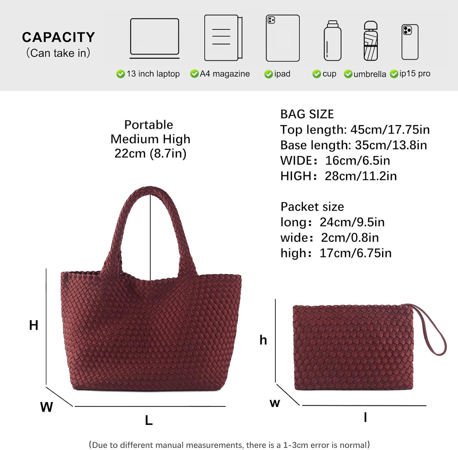 Woven Bag for Women, Large Neoprene Tote Bag Summer Beach Handbag Purse Retro Handmade Travel Shoulder Bag Set