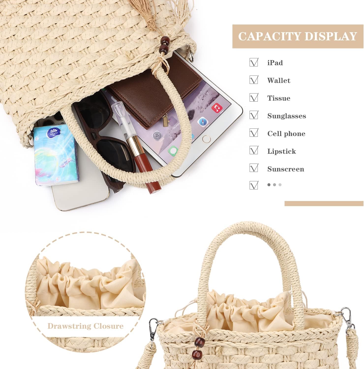 10.6*7.1 *3.9in. Enough room for your stuff for travel and daily necessities such as wallet, glasses, cell phone, cosmetics, cards and others.Top drawstring closure keeps your items safely.