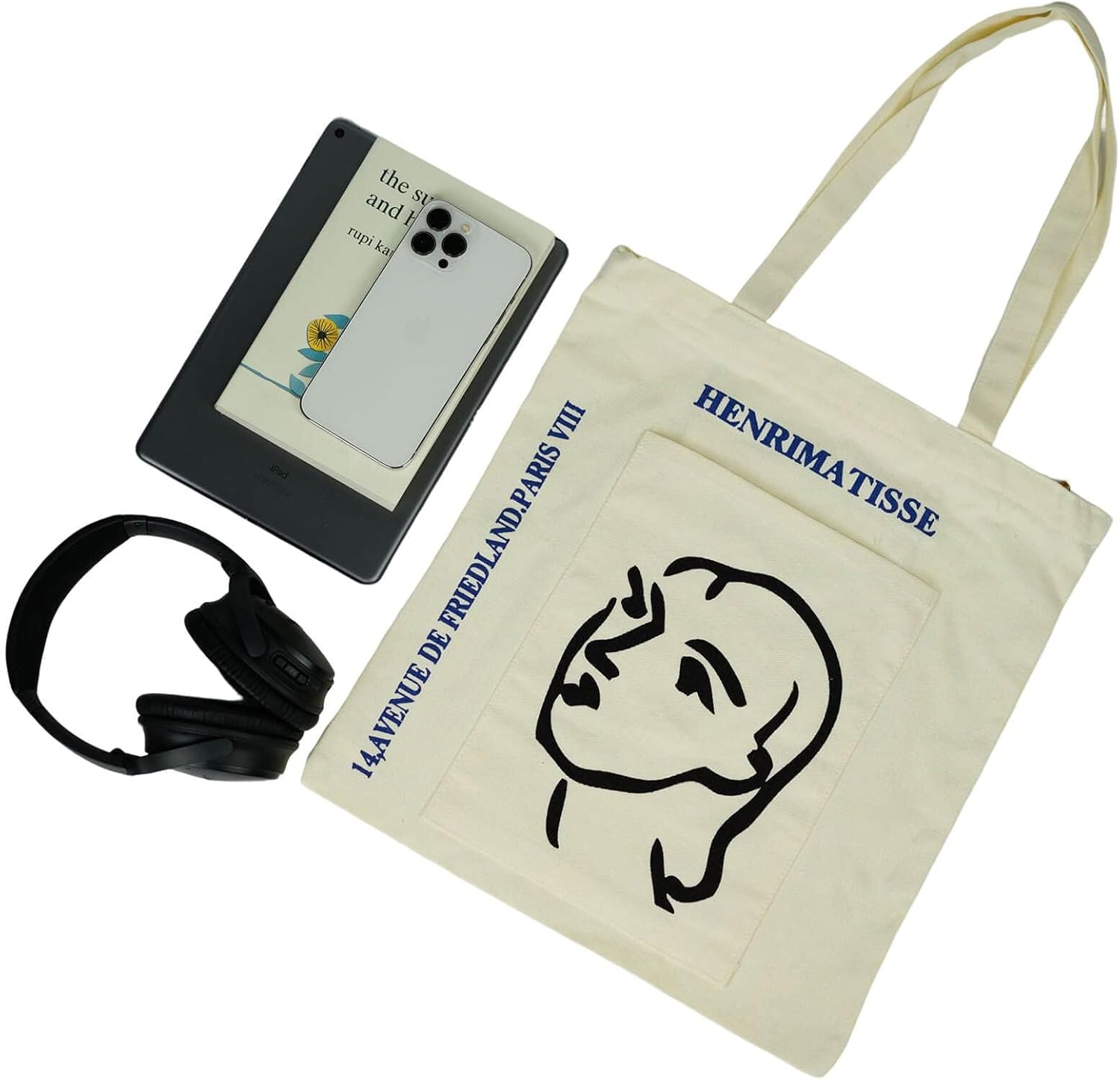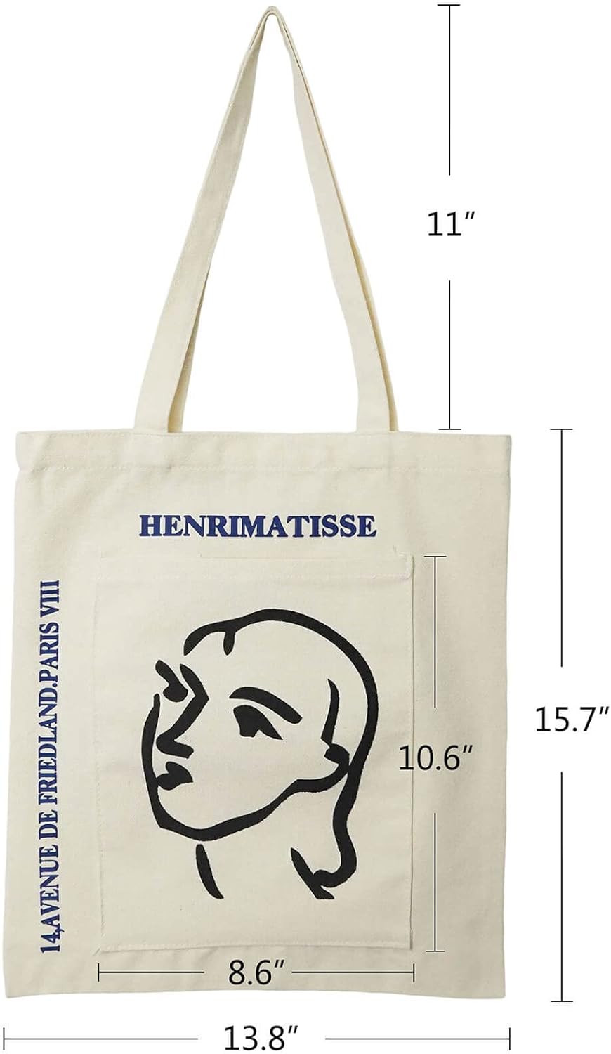 ZAIIVE Canvas Tote Bag for Women, Stylish Canvas Tote Shoulder Bag with Zipper, Casual Canvas Beach Tote with Matisse Print for Shopping and Travel