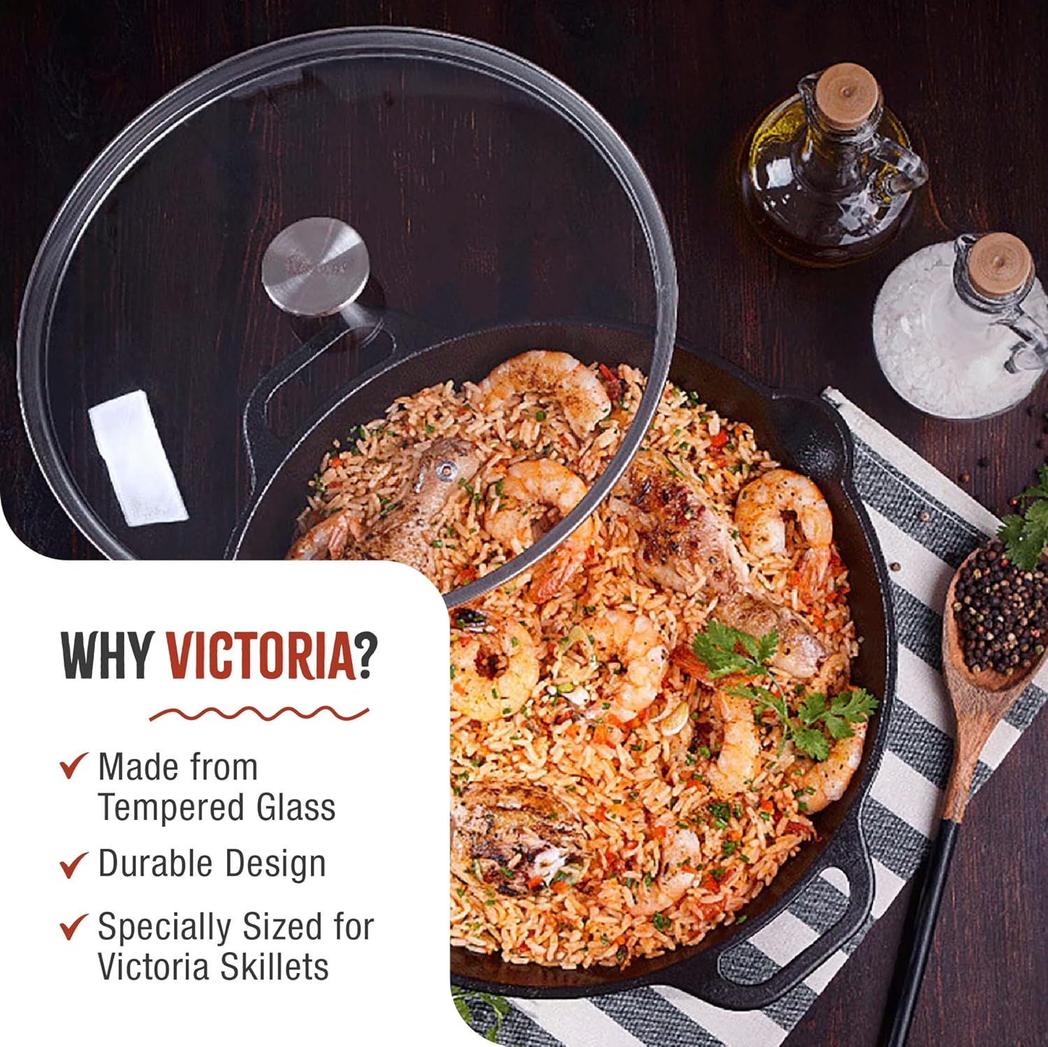 Give your cooking the upgrade it deserves with high-quality cookware. Our tempered glass lid is superior to traditional lids because it’s safer and outlasts more conventional cooking-pot covers. The Victoria glass lid is made from high-quality tempered glass, which can withstand temperature changes and thermal shocks, meaning it won’t break or crack while in use. It’s also easy to see through so you can keep an eye on your cooking without lifting the lid, making it easier to keep all the heat and moisture inside the pan. This pan-or-skillet lid features a stainless-steel vent and a hollow-core stainless-steel handle for superior airflow. The improved airflow keeps the ergonomic handle cooler and prevents overheating. This lid is oven-safe up to 450°F, so you can make delicious baked mac and cheese, a giant skillet chocolate chip cookie, fruit cobbler, and more without transferring your food to another dish. This frying-pan lid is also dishwasher-safe for easy cleanup. Simply remove the handle, place the lid on the top rack of your dishwasher, and it will be ready to use again in no time. Victoria’s cast-iron skillet lid is made exclusively for Victoria-brand pans and skillets and is available in multiple sizes and as a square or round lid. Make sure to choose the correct size that matches your Victoria skillet or pan. This lid will not fit other brands’ pots or pans. Invest in pans, skillets, and kitchen products that will last a lifetime and deliver reliable, natural cooking with every meal.