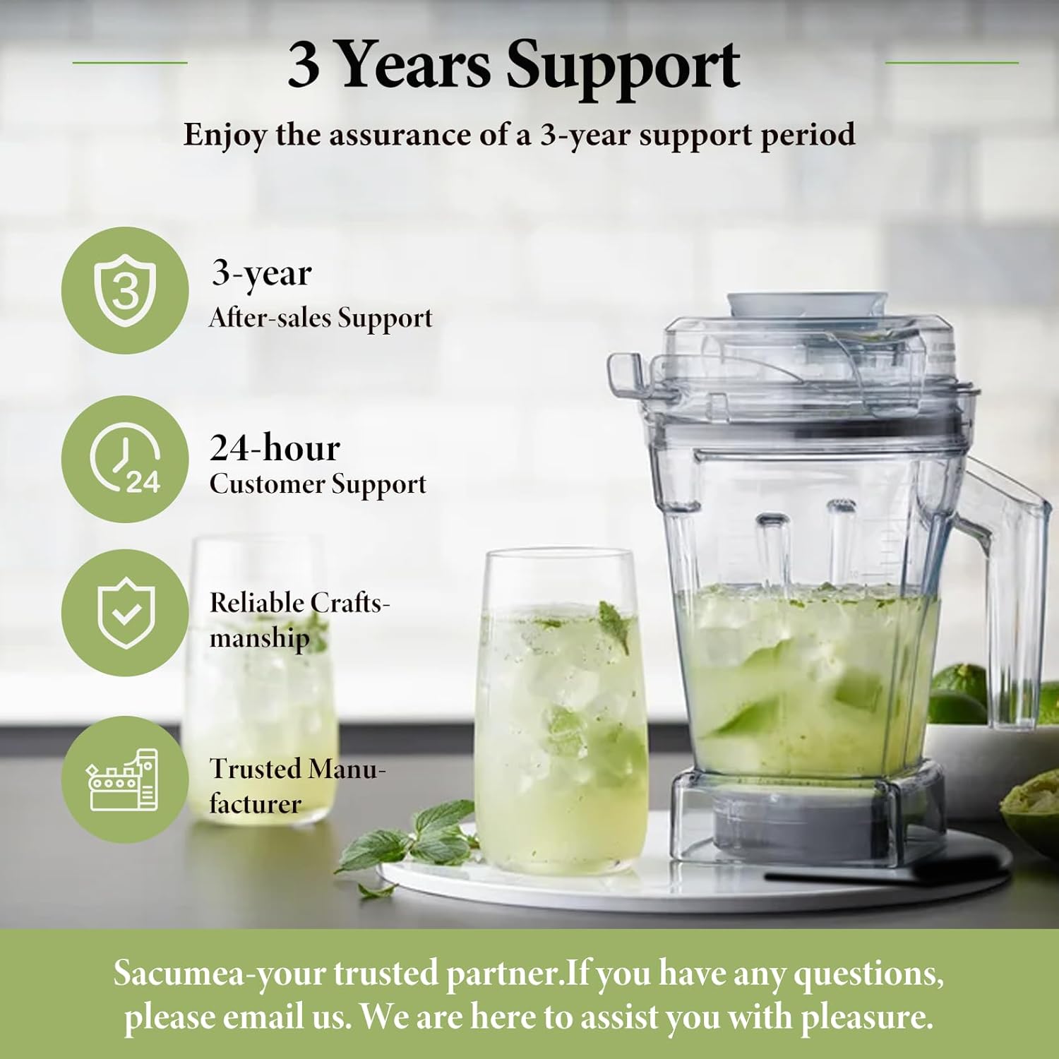 【Important Note】Sacumea is committed to providing buyers with a pleasant shopping experience. And we insist on providing excellent customer service. Even if your 48 oz Aer Disc Container is beyond the return date of Amazon,if for any reason you are not satisfied with the compatibility and quality of Blender Pitcher Replacement. You can reach out to us anytime through “Order History” – “Contact Seller”