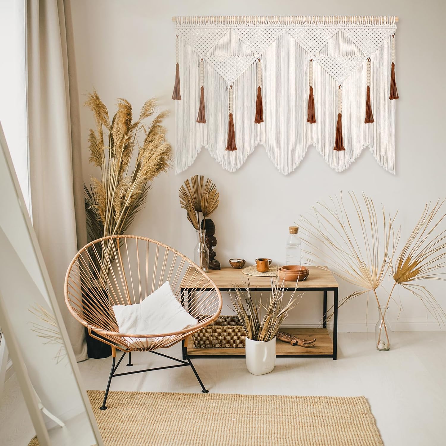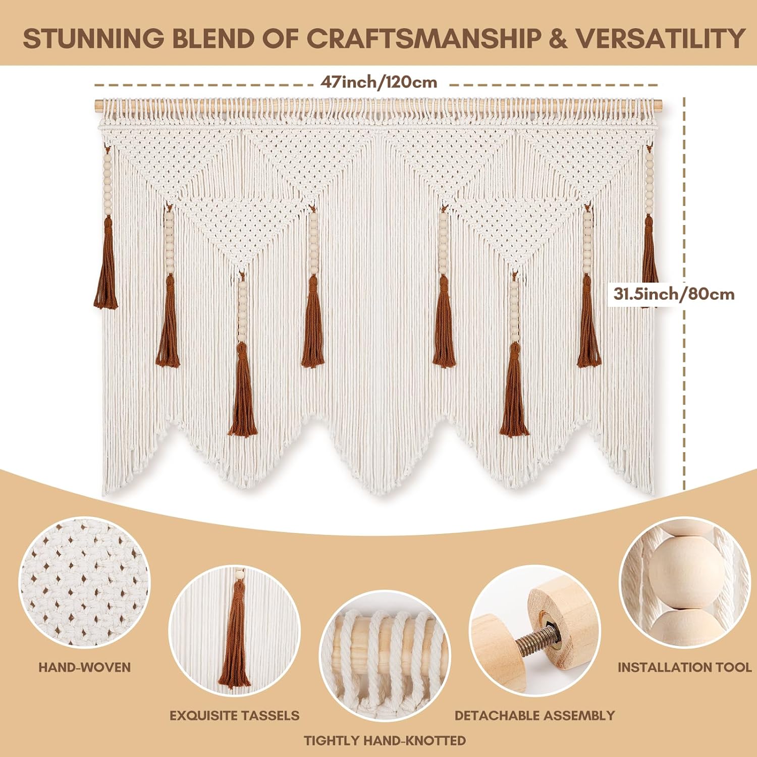 Ideal Gift:This Large Macramé Wall Hanging makes for a thoughtful and unique gift for various occasions such as birthdays, weddings, housewarmings, or any celebration.Surprise your loved ones with a timeless piece that adds charm and character to their living space.