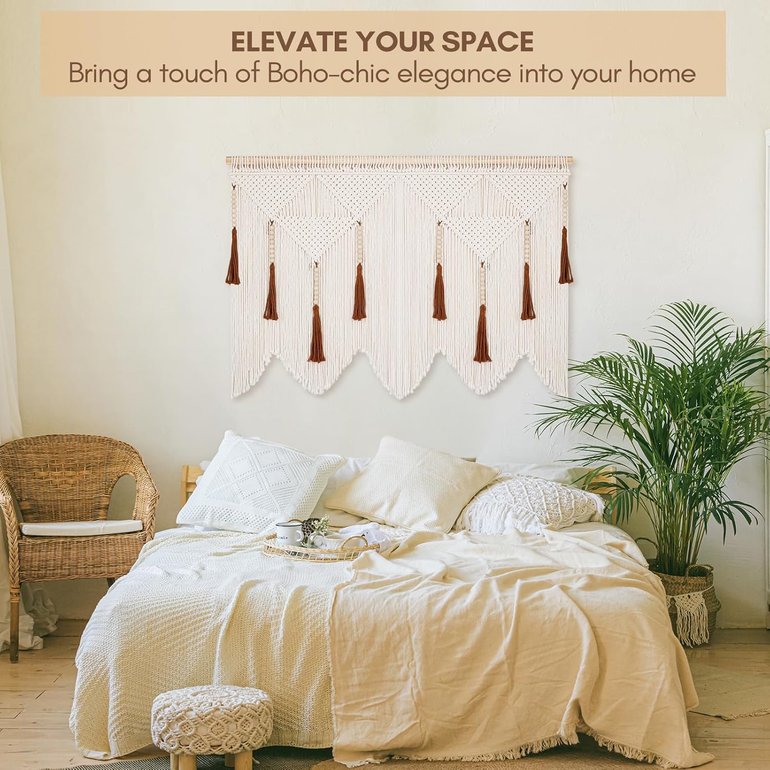 Whether hung above a bed, sofa, fireplace, or window, this macrame masterpiece enhances the ambiance of any space with its timeless charm.