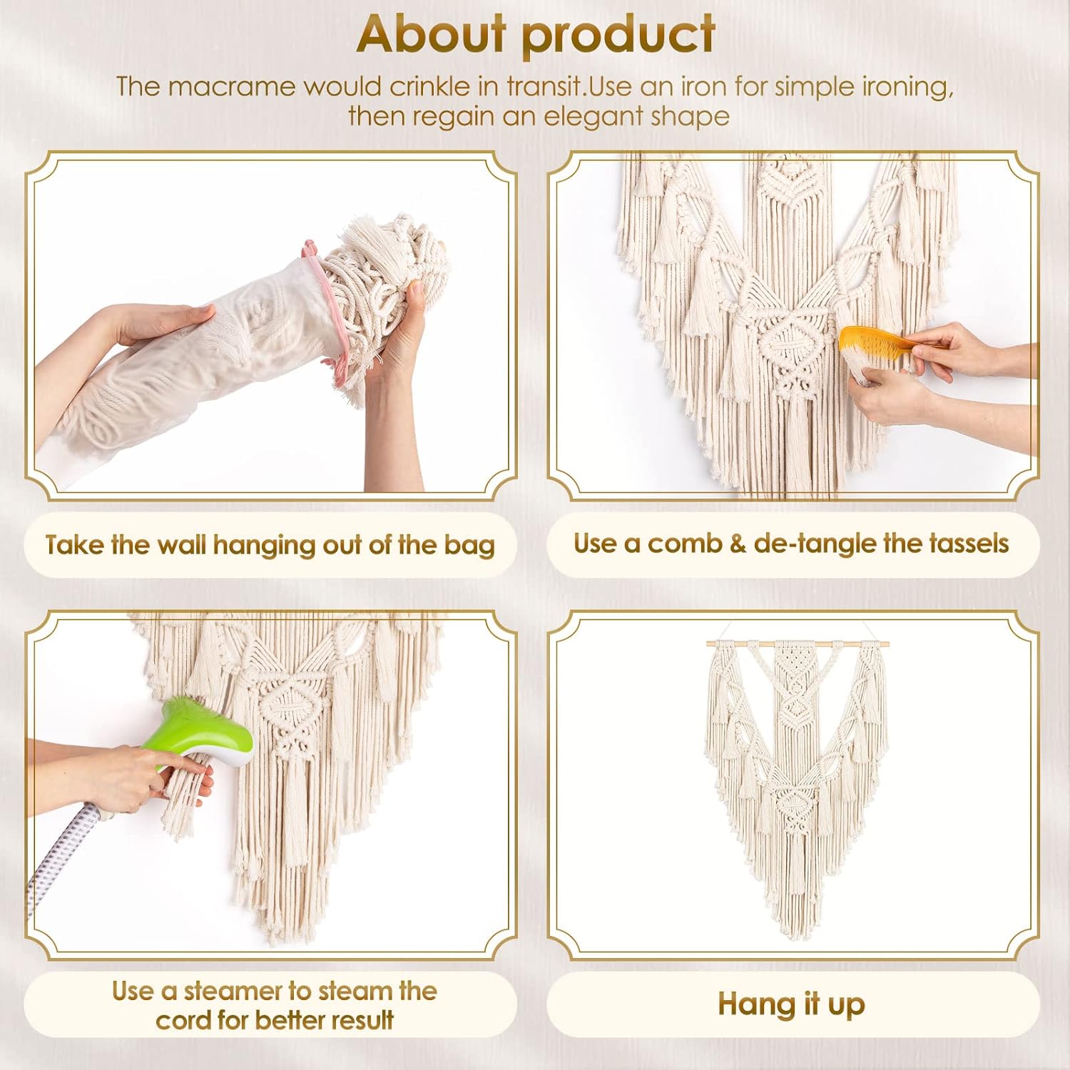ECO-FRIENDLY: This macrame wall hanging is made of pure cotton cord, without artificial ingredients or chemicals. We believes using natural materials will bring a feeling of safety and a feeling of connection to Earth. This macrame art pieces was inspired by our designer’s interest in the native american culture, its patterns and symbolism.