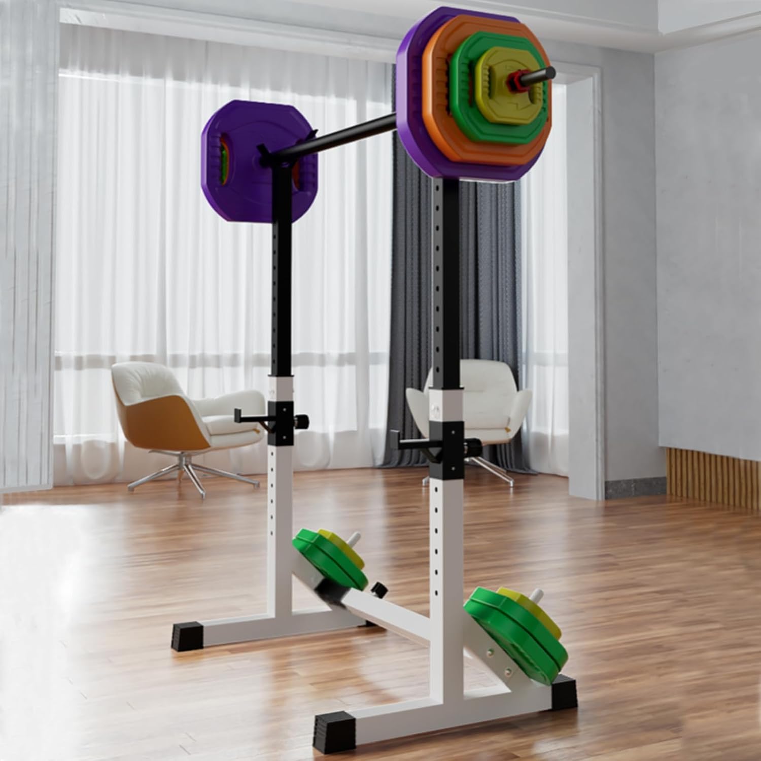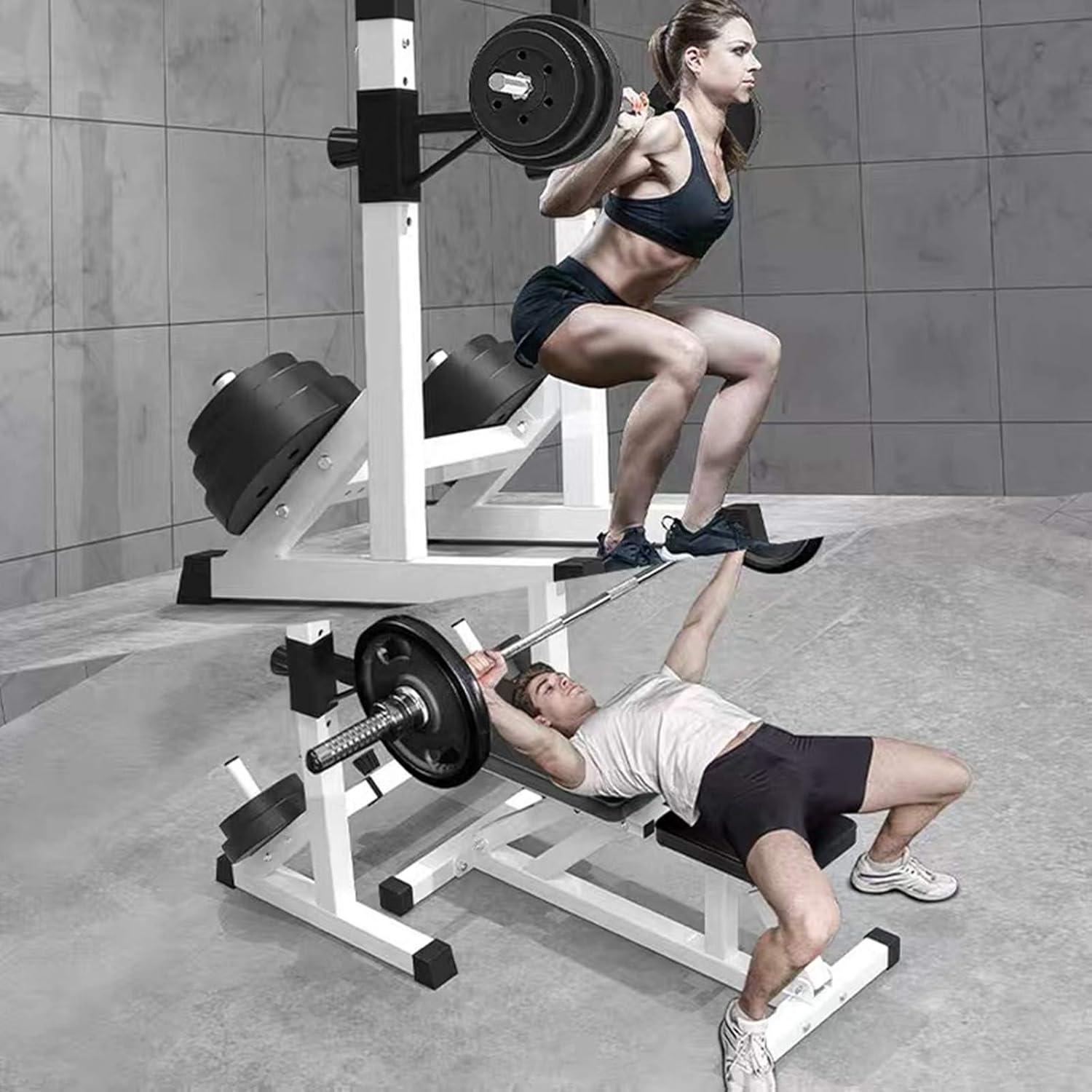 MULTIFUNCTIONAL FITNESS FUNCTION: Equipped with 2 barbell storage rack design allows you to easily carry out a variety of exercises, including bench press, shoulder press, squat, dips, elevated lifts, etc.