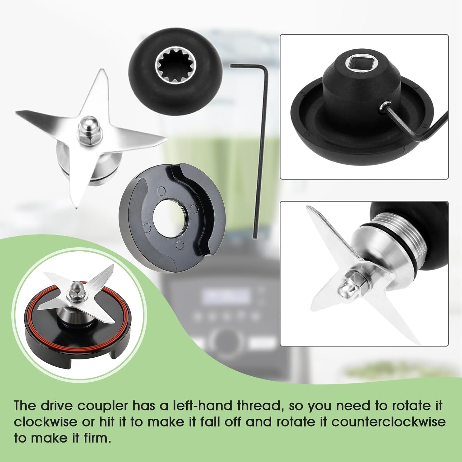 Blender Blade Replacement for Vitamix, 4 Wet Blade with Wrench, Retainer Nut, Drive Socket Repair Kit, Compatible with Vitamix 5200 Series Blender Mixer 32oz and 64oz Standard Container