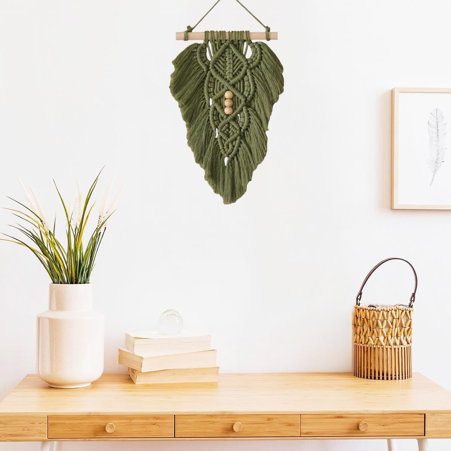 Boho Macrame Wall Hanging Leaves Note: Care for in seconds and just dust it off (some also use a hair dryer). Easiest piece of macrame decor – ever! Perfect woven wall hangings for nurseries or hang as a stunning sage green tapestry in a front entrance