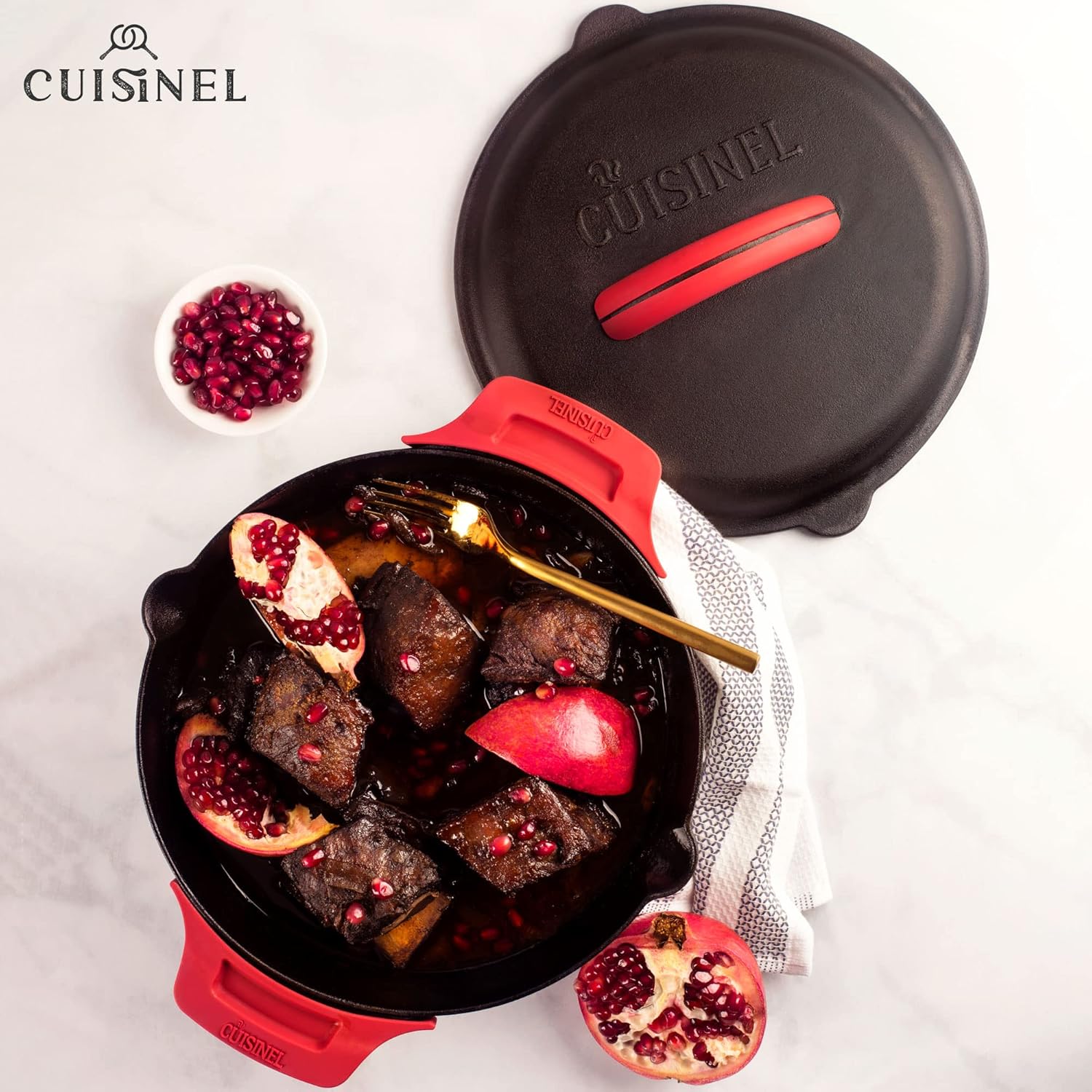 PRE-SEASONED CRAFTSMENSHIP – Crafted to last for generations, Cuisinel sources the highest quality materials in casting our cookware. Cuisinel cast iron is notoriously safer than teflon or other non-stick materials. Continuous easy-to-follow seasoning will result in a safe, healthy and virtually non-stick pan. After every use, cast iron should be hand washed, dried thoroughly on the stove at medium heat and seasoned with natural oils; Do not put in dishwasher and do not air dry.