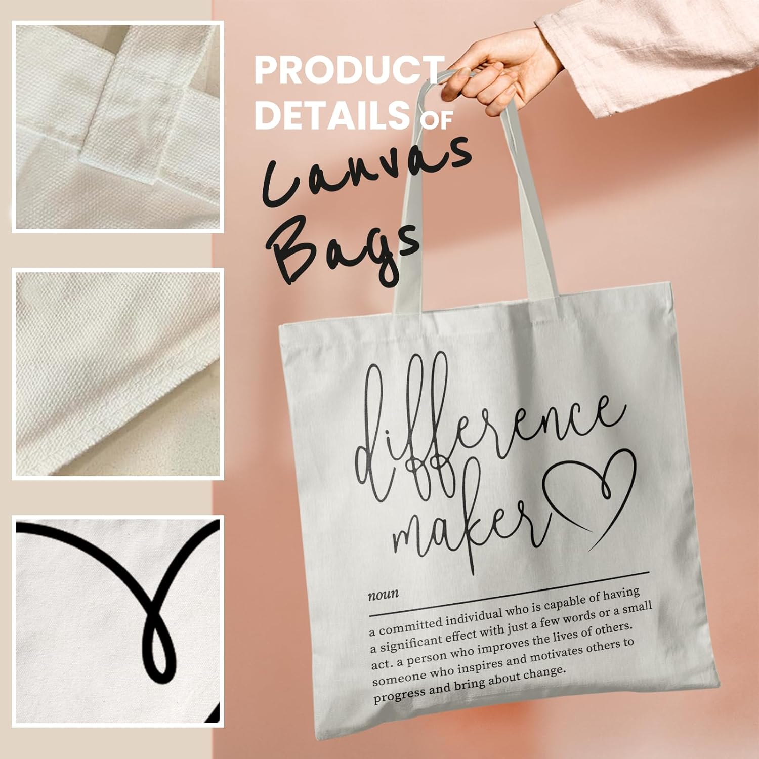 Difference Maker Sign Canvas Tote Bag -ToteBag, Thank You Gift for Women, Assistant Principal Appreciation Gifts