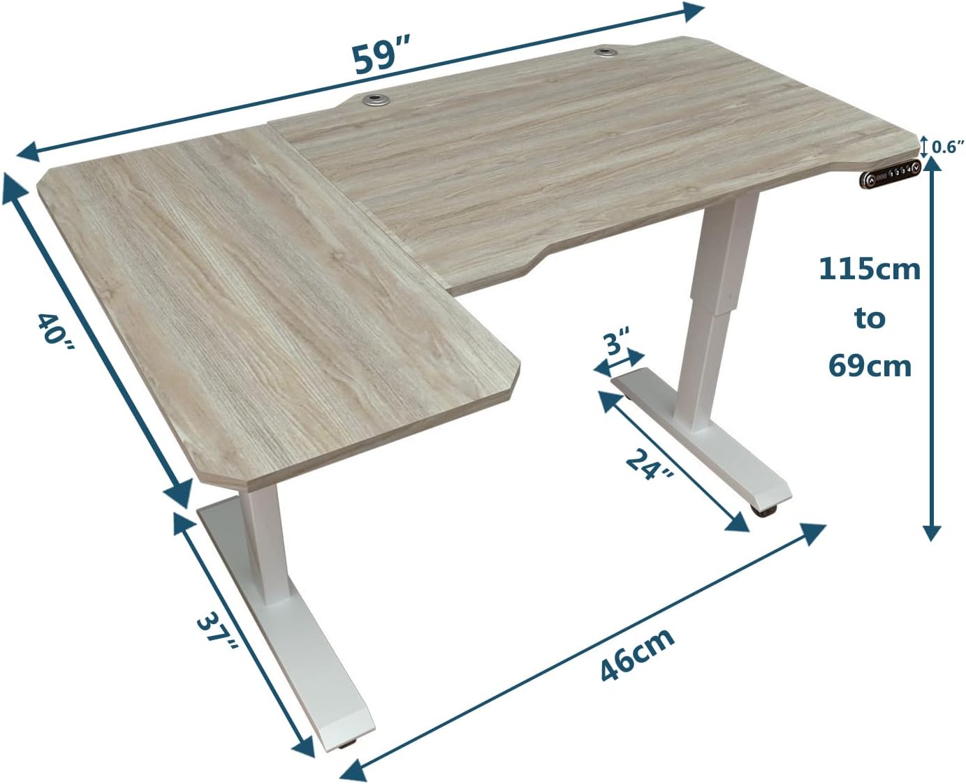 Electric L Shape 59 Inches Standing Desk, Sileye Height Adjustable Sit Stand Up Computer Table, Large Modern Smart Ergonomic Home Office Workstation with Splice Board Oak Top + White Frame