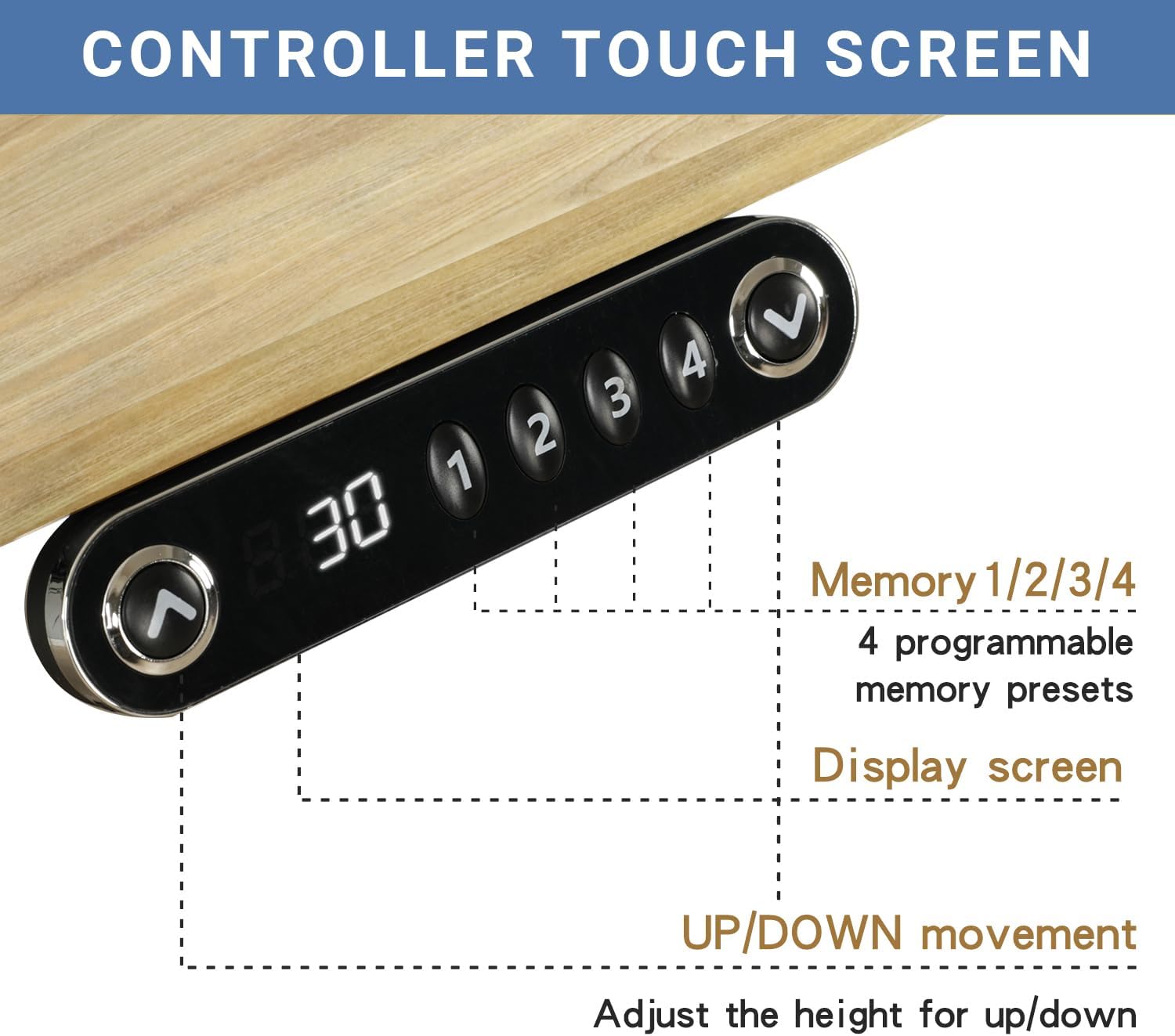 Practical Design: The built-in anti-collision sensor are given higher sensitivity to stop the electric desk from moving up or down when an object is in the way. Plus, Four programmable height presets, which you can save 4 frequently used heights in it, fast and convenient.