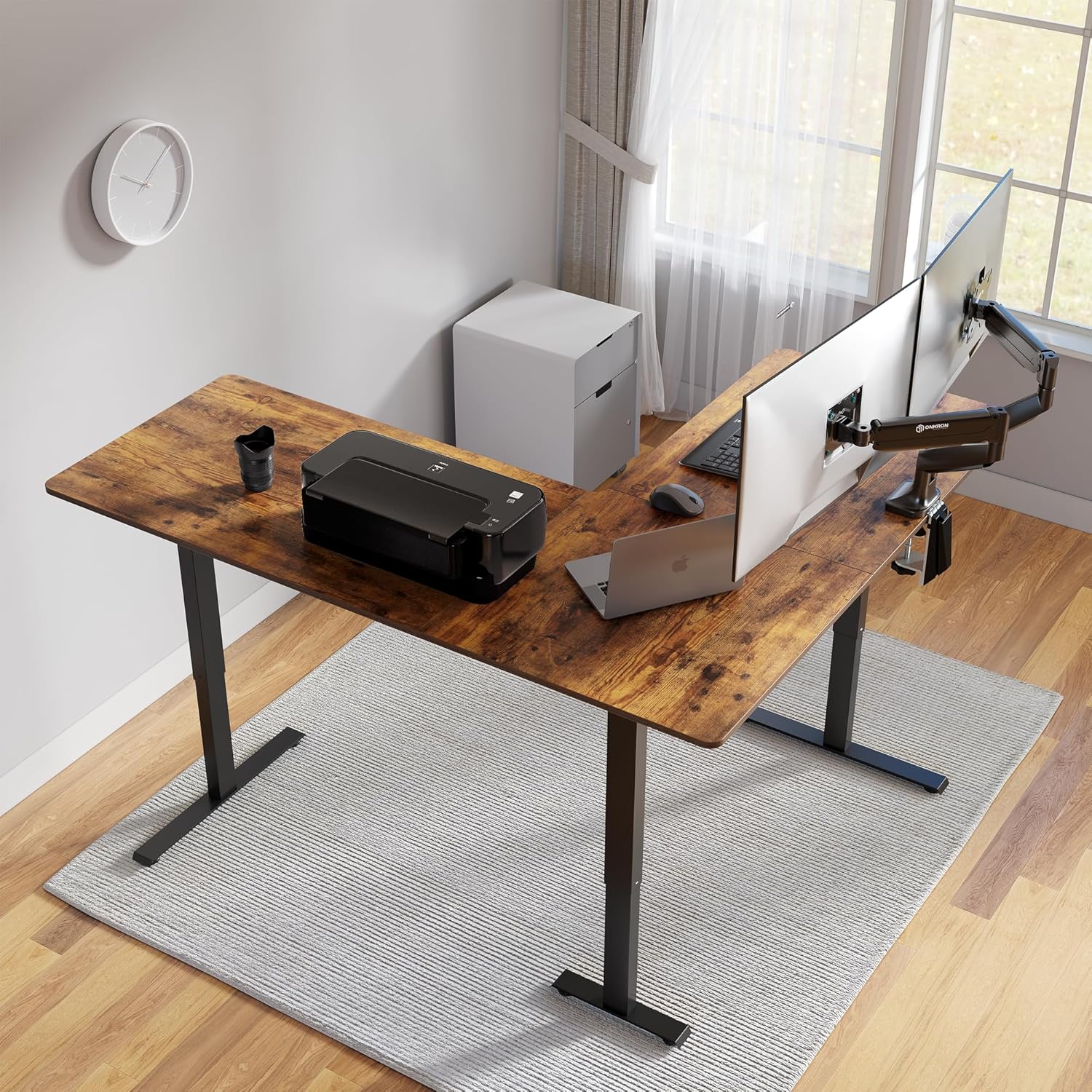 【Electric Adjustable Height 】Fezibo L-shaped standing desk has 2 preset memory buttons satisfy your separate height requirements from 28.3″ to 46.8″ with low noise(under 48 dB) while running. A variety of height choices satisfy your multiple tasks, both standing and sitting.