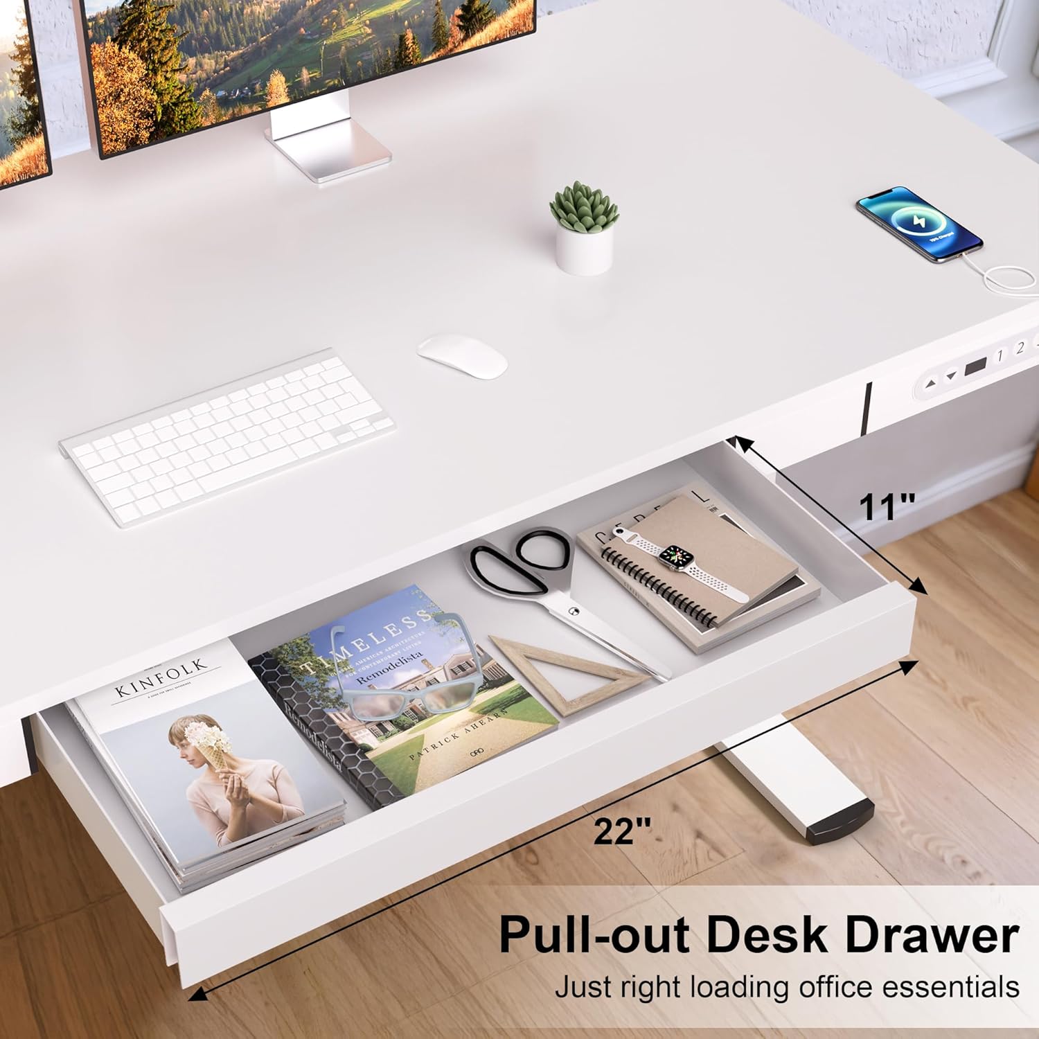 Pull Out Drawer: The built-in desk drawer is made of metal material, sized 22 (L)x 11 (W) inches, offers extra storage and good support for stuff like keyboard, watch, books, leaves your office table top organized, so say goodbye to clutter situation.