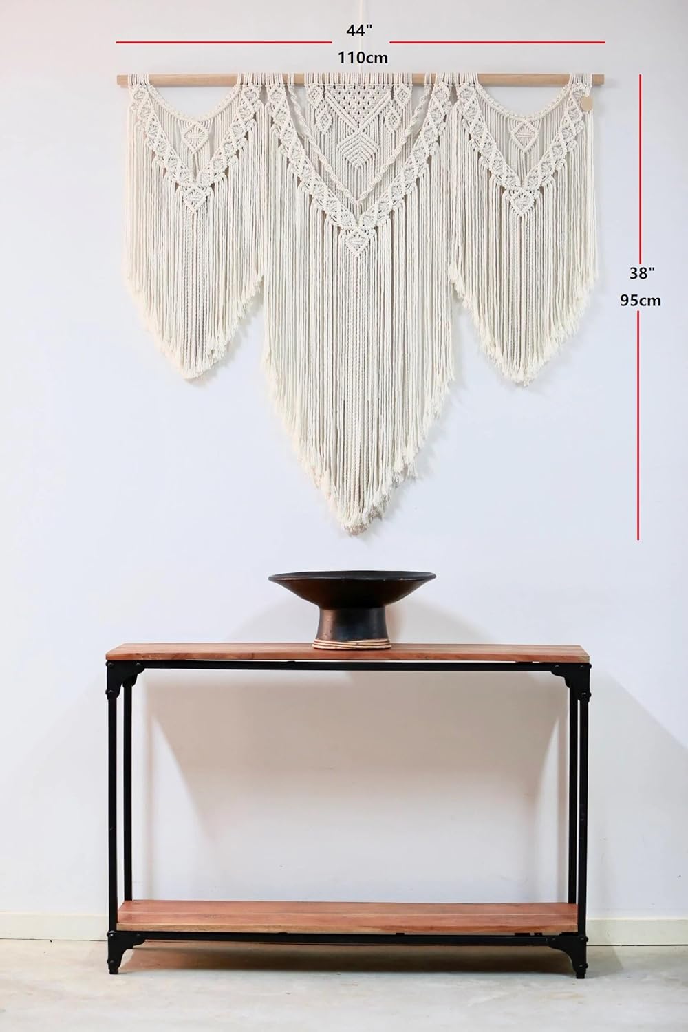 【EASY TO INSTALL】:macrame wall hanging and 3 wooden splicing sticks included, so you can easily put the three wooden sticks together to make a large macrame wall hanging. The size of 44″X 38″.