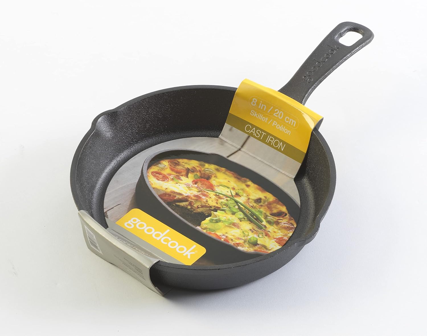 Bring high-quality cookware to your home kitchen with the GoodCook 8″ Pre-Seasoned Cast Iron Skillet. Designed with home cooks in mind, this cast iron pan features an 8″ diameter surface with flared side edges that is ideal for single meals or baked dessert recipes. The durable cast iron retains heat for even heat distribution that provides professional-quality results when frying, braising, and roasting. Perfect for quick meals and even camping, the skillet comes with a pre-seasoned coat that prevents the cast iron from rusting while sitting in storage. The high-quality pan is also oven safe to 500 degrees Fahrenheit to make delicious dinners a breeze. GoodCook stands behind its products and offers a lifetime satisfaction guarantee to ensure you love your skillet. For over 30 years, GoodCook has created the tools that have made life in the kitchen easier and more enjoyable. As we’ve grown, we strived to stay on trend and continually incorporate more function and value into our kitchenware products. We take pride in the fact that GoodCook products are being used every day, and that our name is recognized as a helpful resource supplying products, recipes and inspiration for home cooks across America.