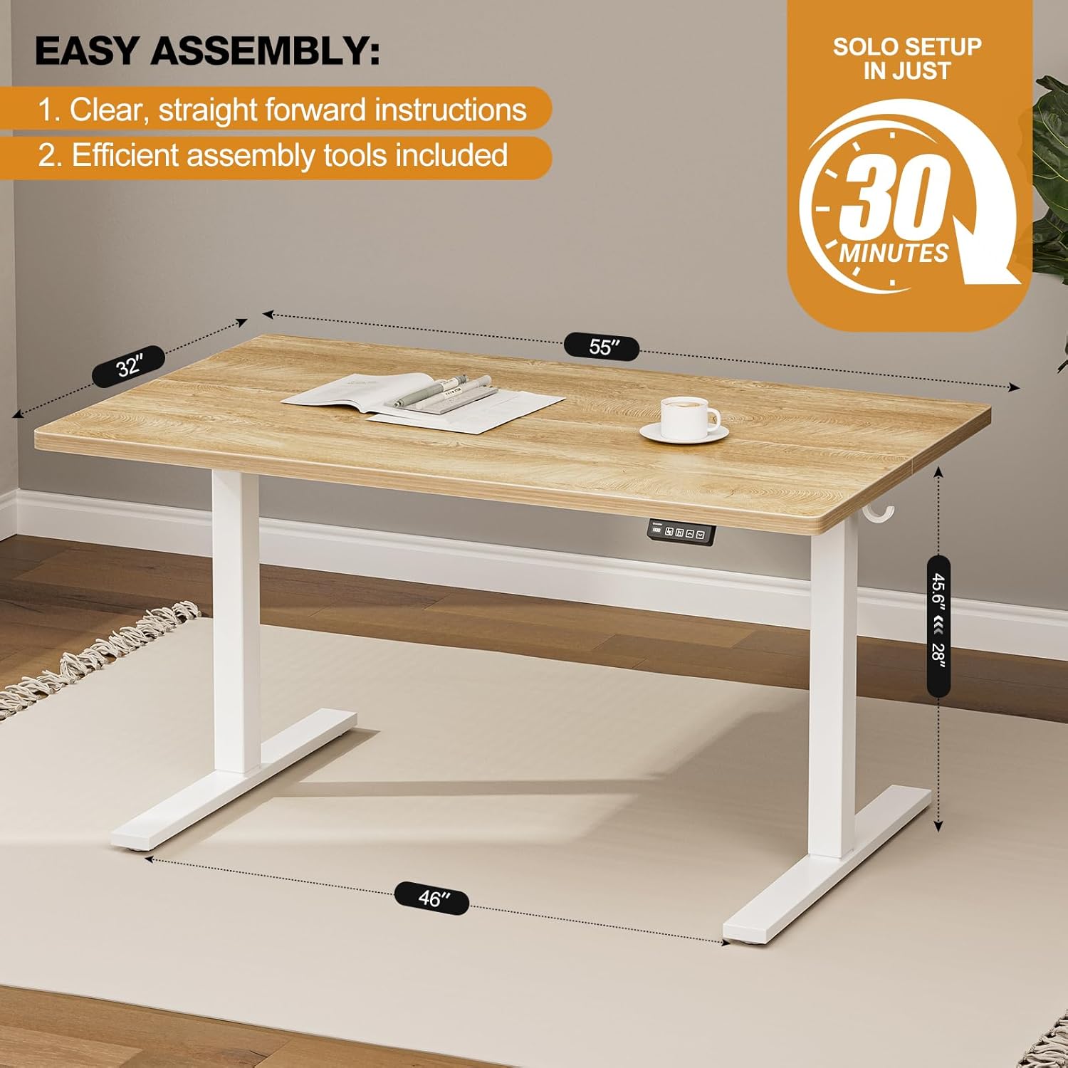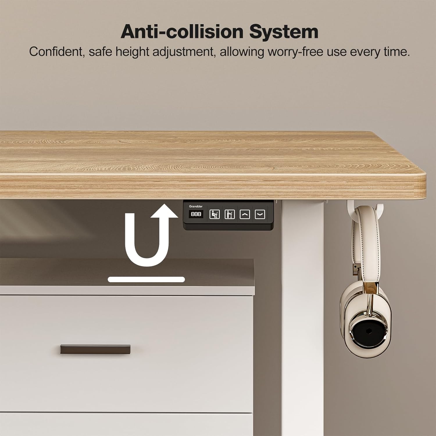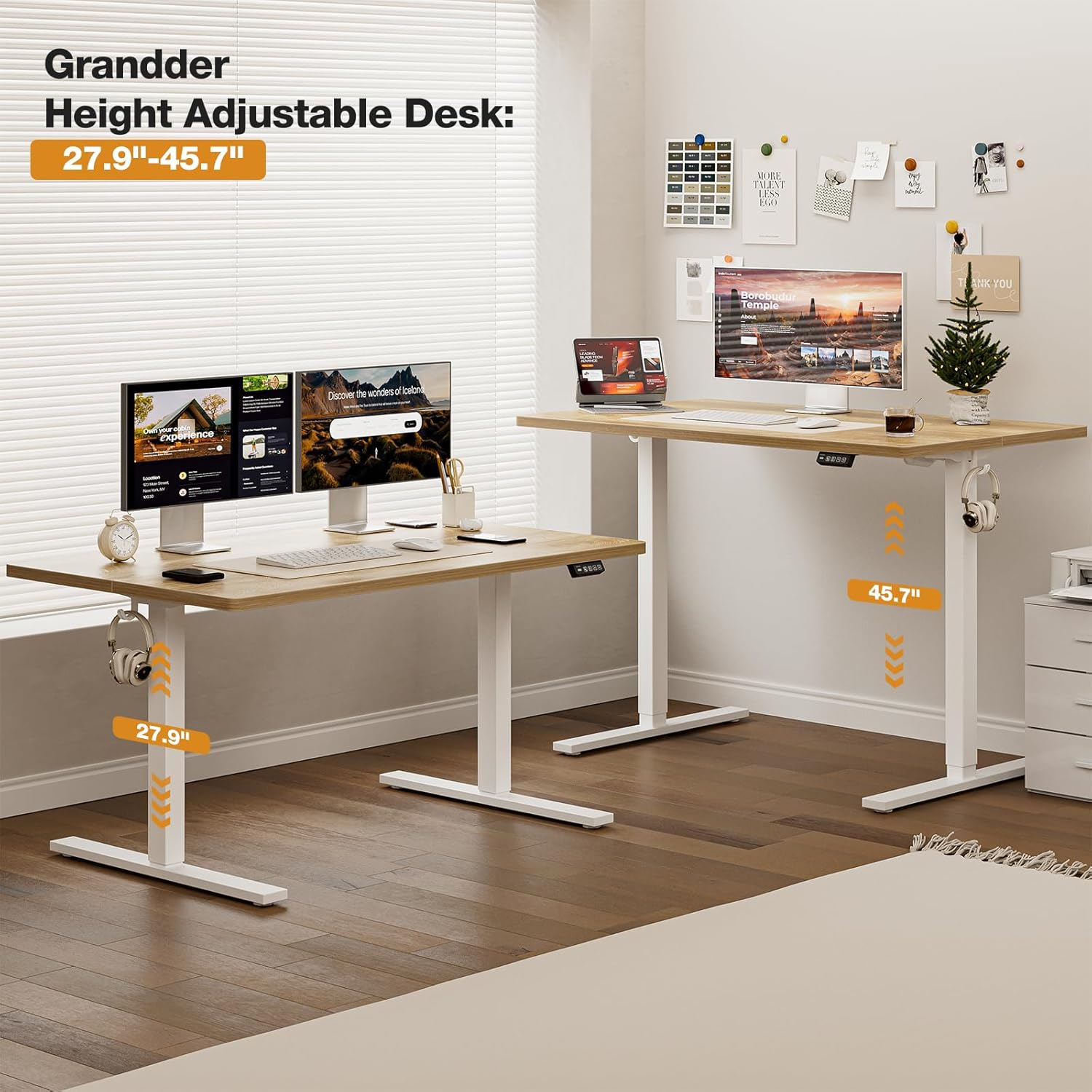 【Extra Spacious 55×32 Inch Desktop】Designed for productivity and comfort, the Grandder electric standing desk offers a large 55 x 32 inch workspace—providing ample room for dual monitors, laptops, and accessories. Its deepened desktop gives you extra space to stay organized and efficient throughout the day.