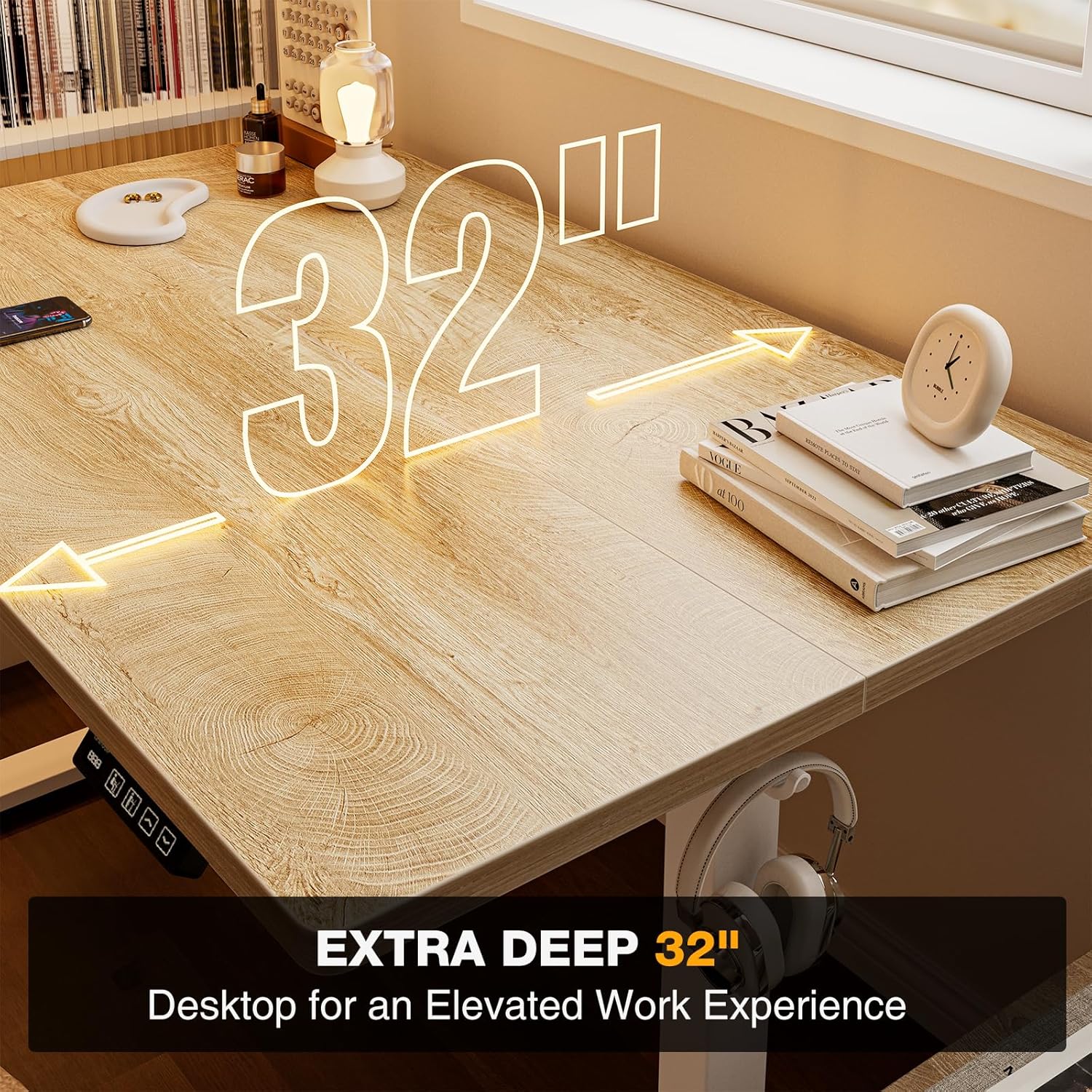 Grandder 55×32 Large Electric Standing Desk, Height Adjustable Computer Desk with 2 Memory Presets, 31.5″ Deep Desktop Sit Stand Desk Home Office Desk Workstation Table with Hooks, Oak