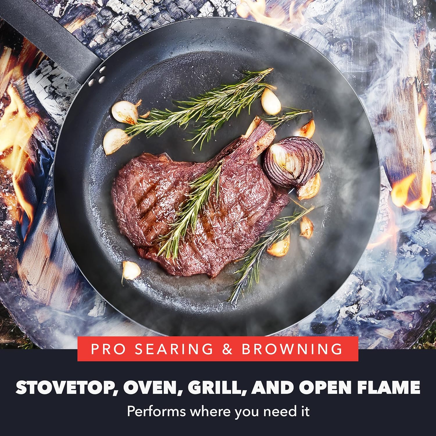 PREMIUM CARBON STEEL: Heats quickly, retains heat, and adapts to temperature changes for precise cooking.