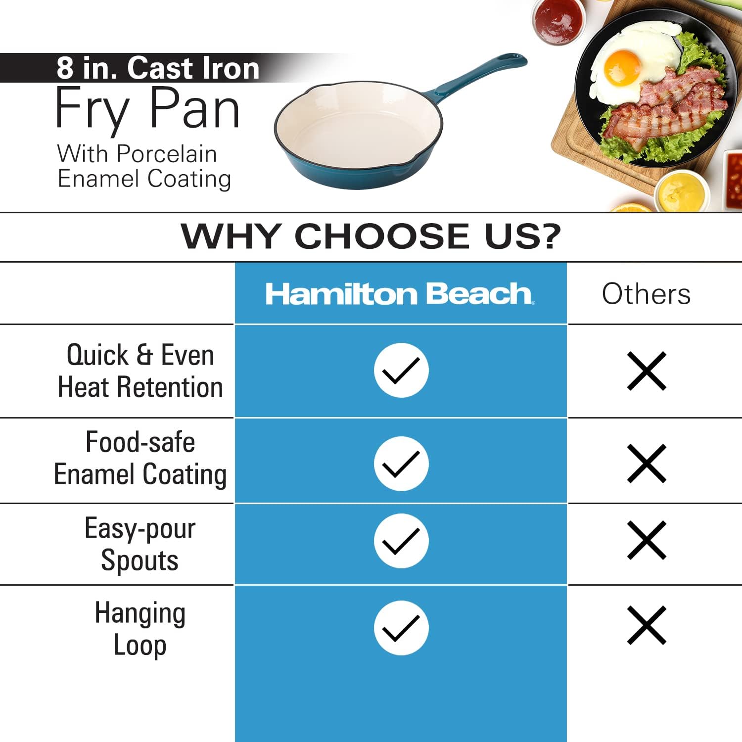 HIGH QUALITY: We want our customers to be completely happy and satisfied, so we pack each Hamilton Beach Cast Iron Fry Pan 8-Inch with care. If you have any questions or concerns about the product, please feel free to reach out to us.