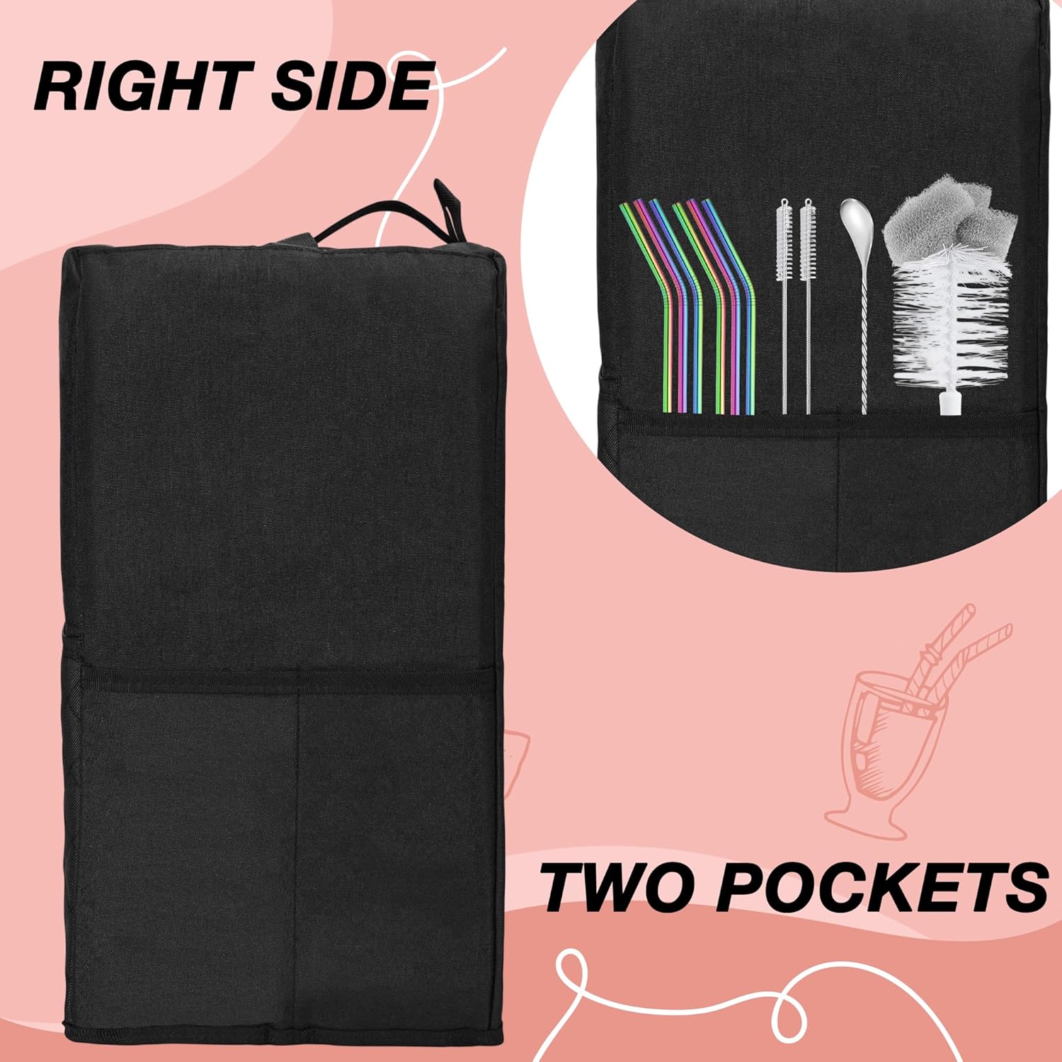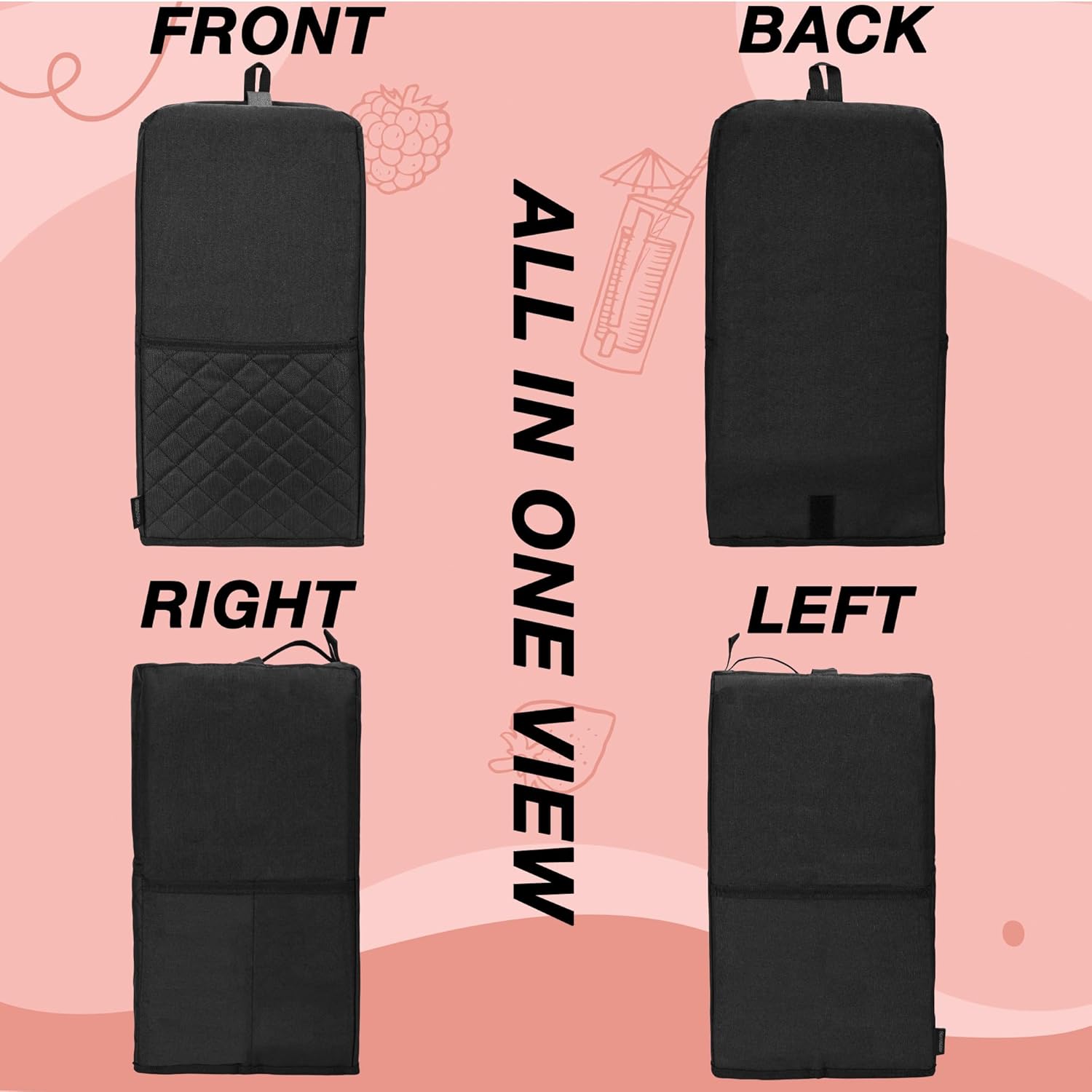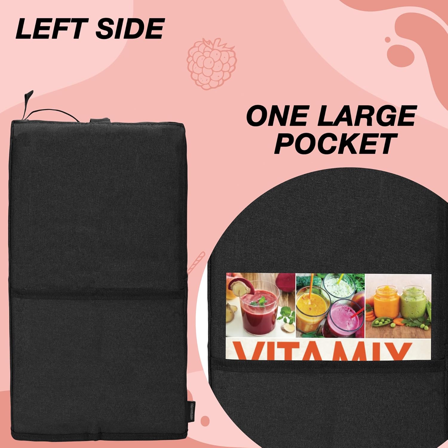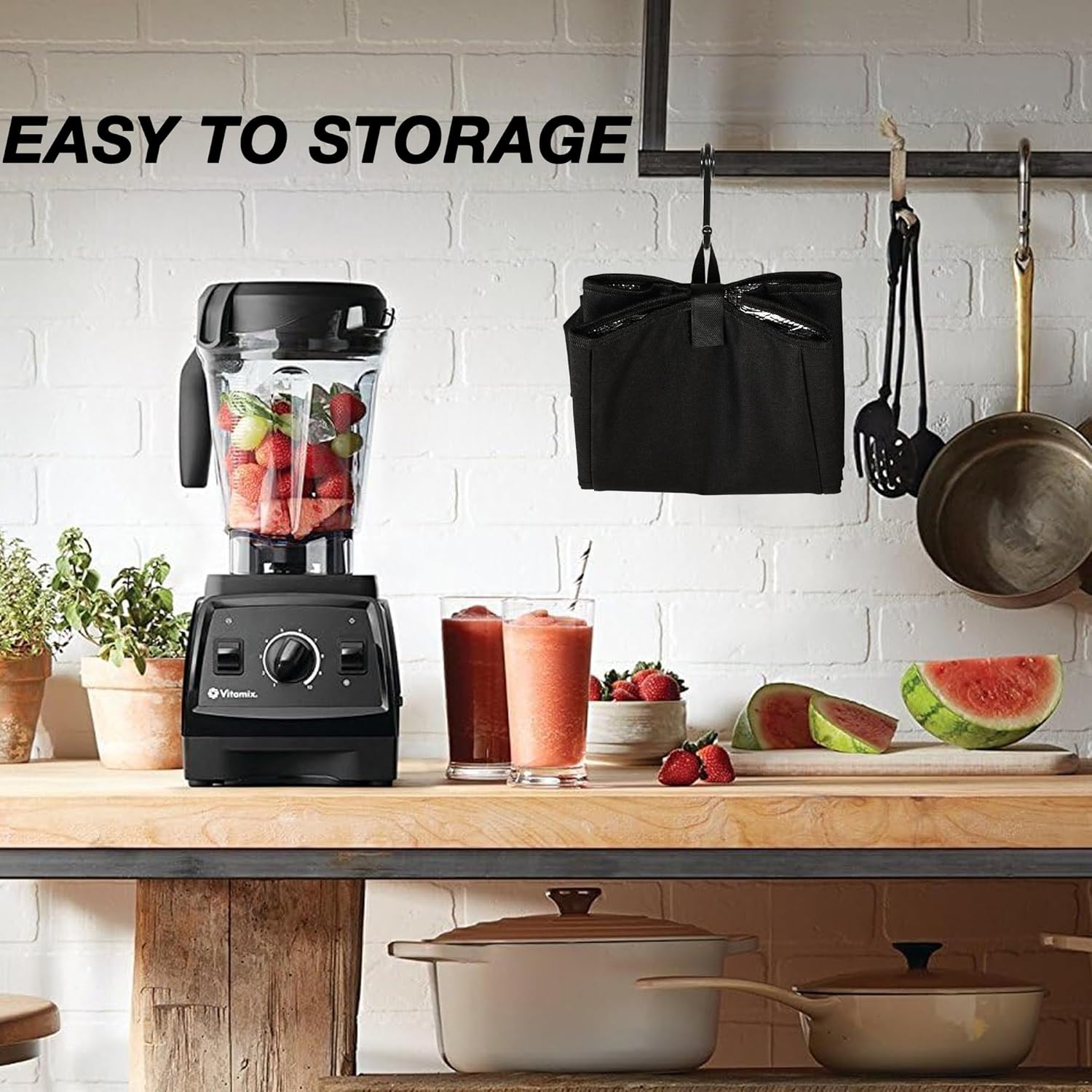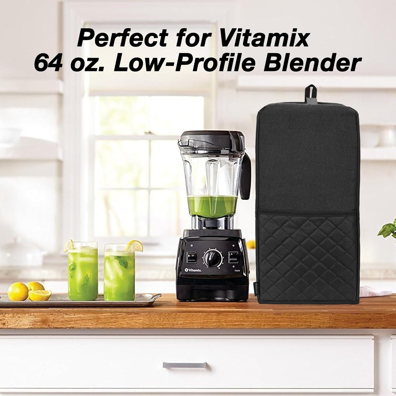 Hanging Blender Cover Compatible with Vitamix Low-Profile 64 oz. Blender, Foldable Dust Cover with Accessory Pockets for Kitchen Blender, Black Quilted