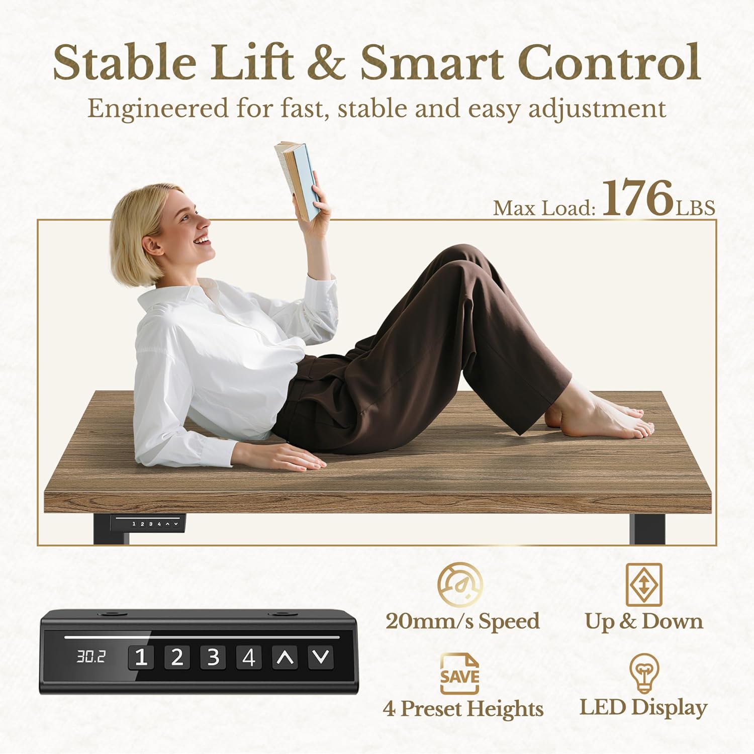 Electric Height Adjustable:Perledesign ergonomic electric standing desk allows you to release your hands and effortlessly customize the desired height between 28.35″ to 46.46″, Features an LED display and 4 memory presets.