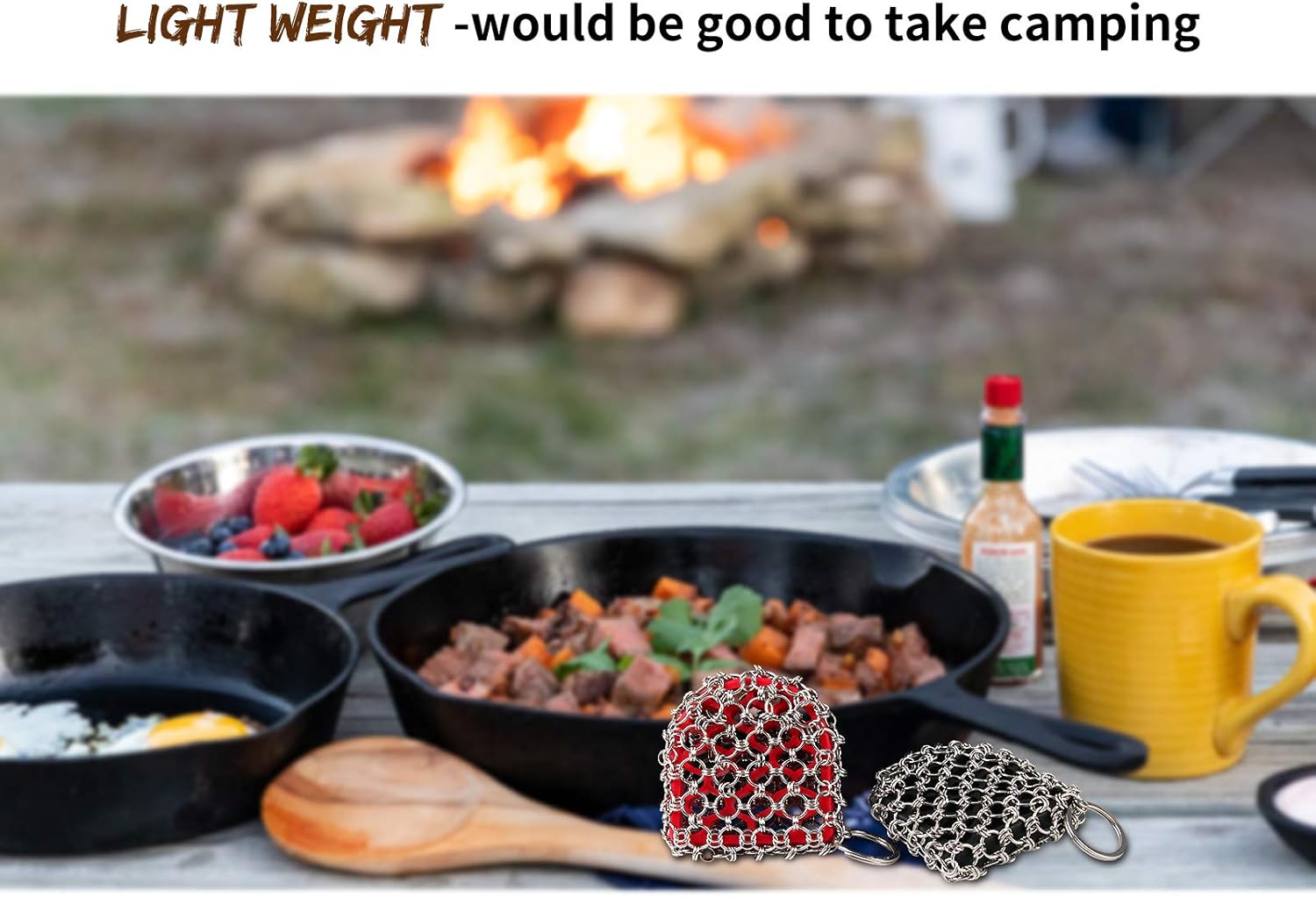 This 4 pieces care Kit contains everything you need to keep your cast iron clean, includes chainmail scrubber,pan scraper, grill pan scraper, cloth rag for cast iron seasoning.