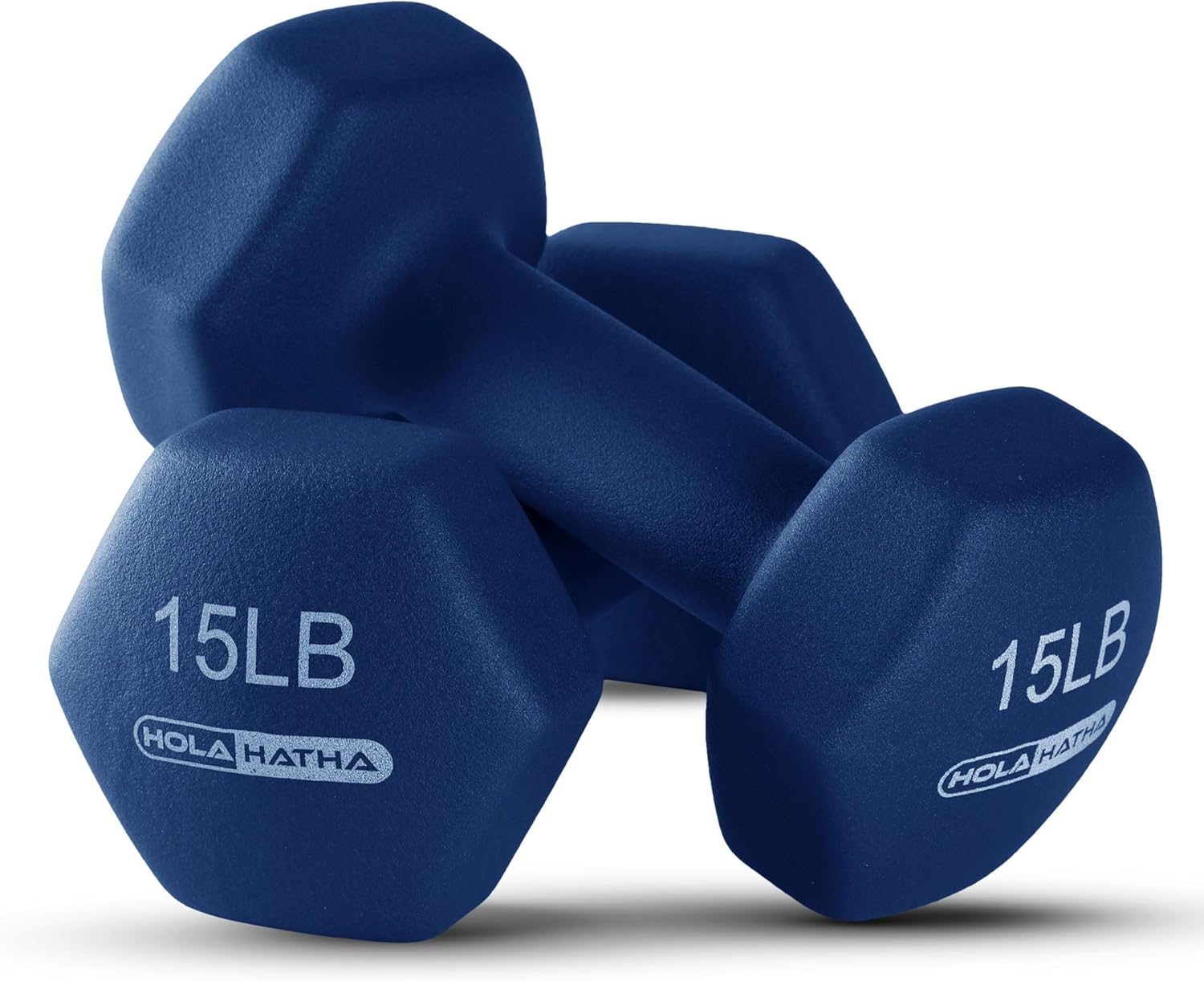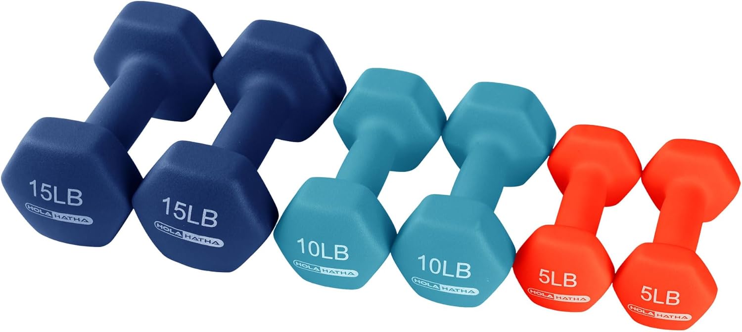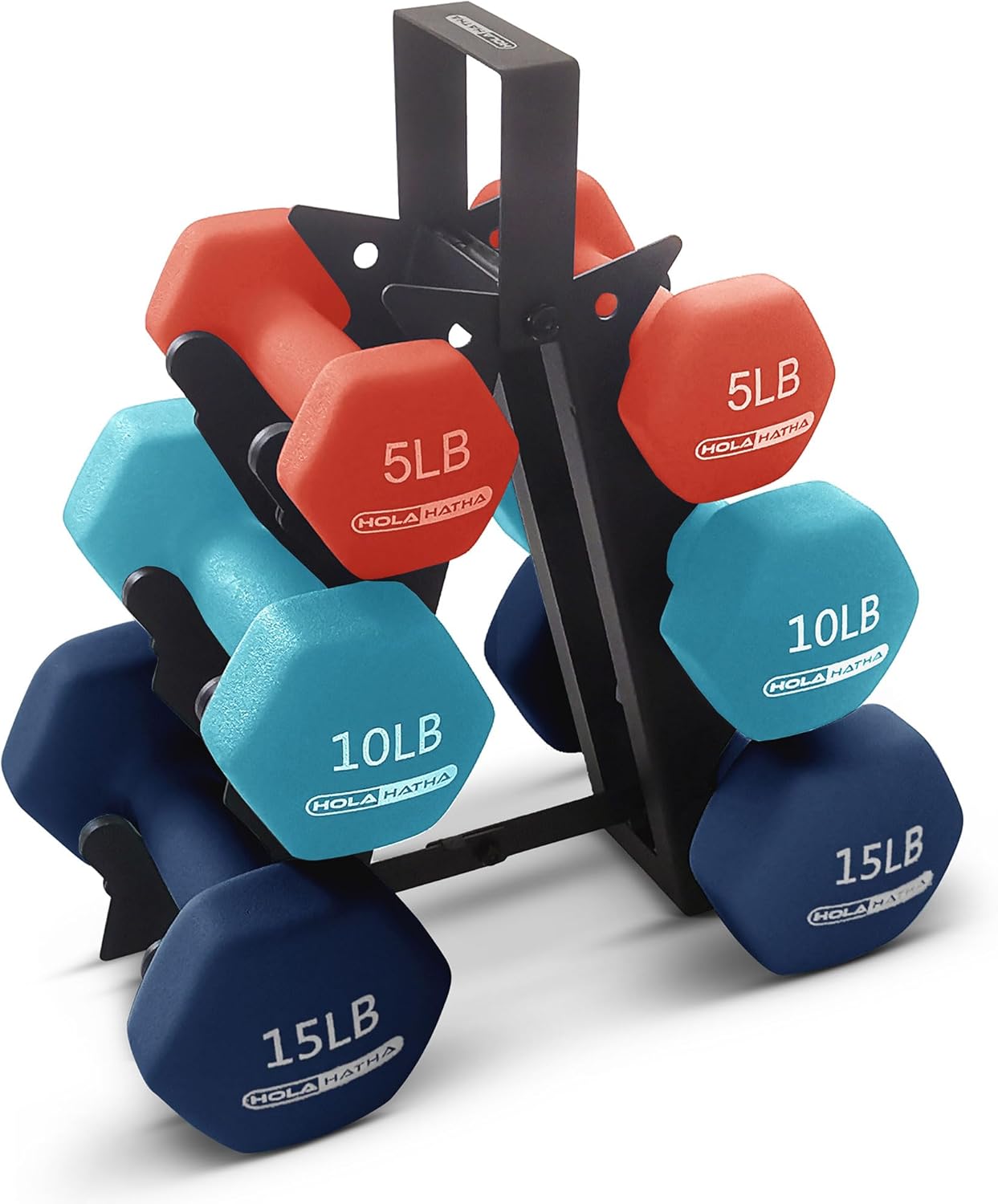 HolaHatha Neoprene Dumbbell Weights Set with Rack, Home Gym Equipment, 60 Lbs, Blue/Red – Portable Weighted Exercise Dumbbells for Fitness, Training, and Lifting Workouts