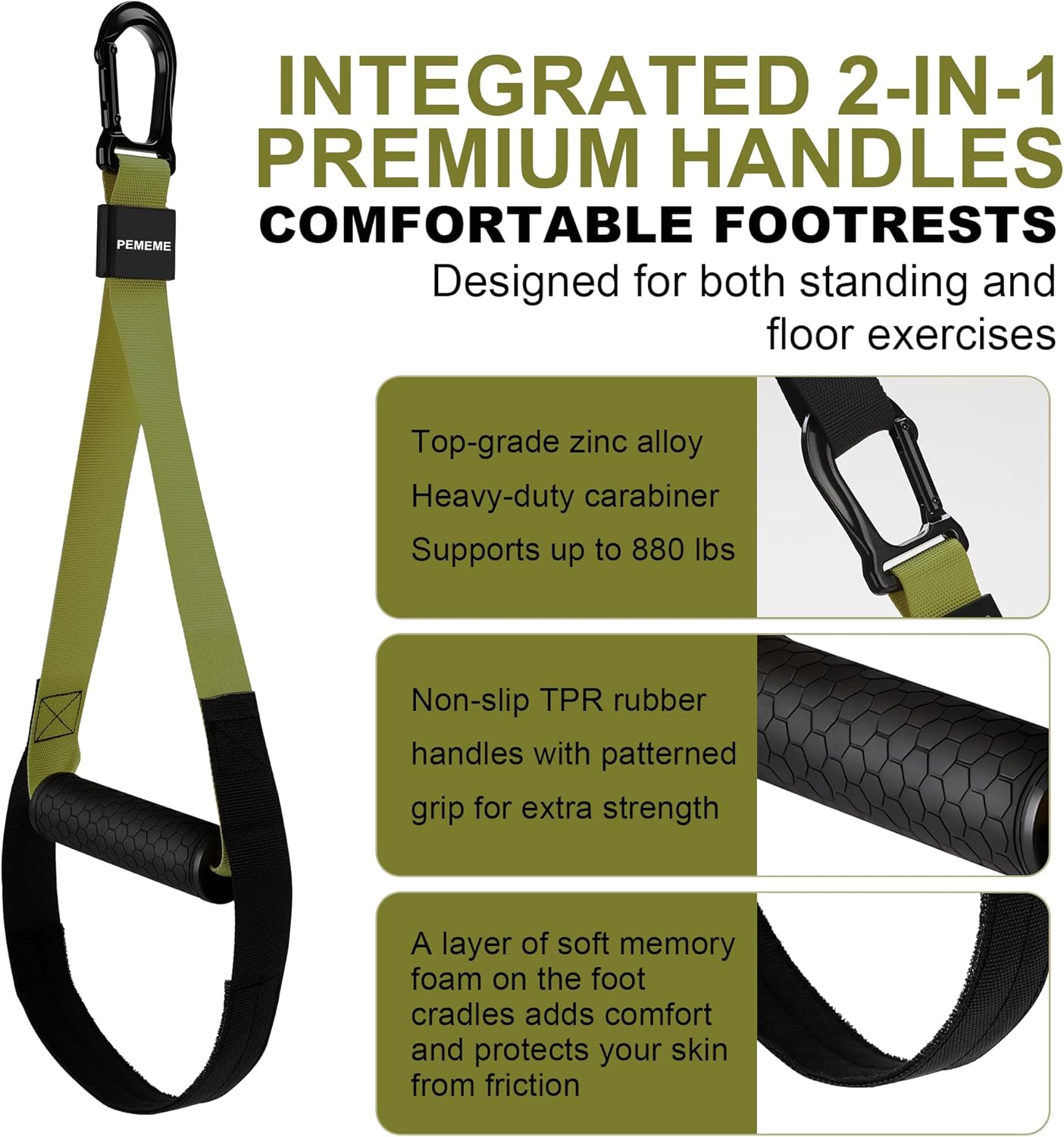 [Premium Quality Construction] – Crafted from high-density nylon and strong polyester fiber, our resistance trainer ensures durability and reliable performance. Equipped with comfortable grip-proof handles and heavy-duty carabiners, this kit ensures safety and longevity. It’s an essential piece of home exercise equipment for those who need a quick setup and demand high-quality workout gear.