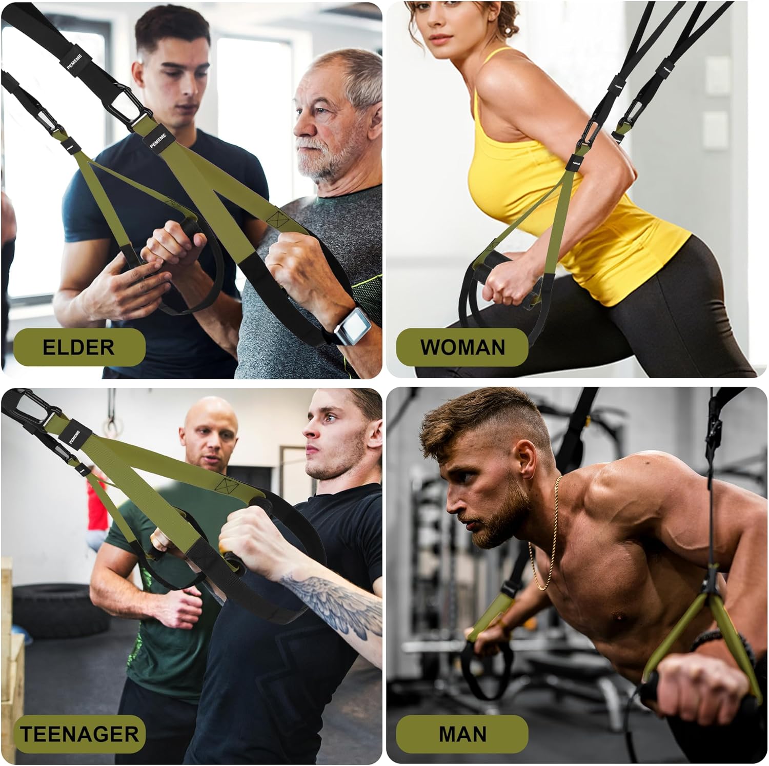 [Versatile Full Body Workout] – Elevate your fitness with our suspension trainer kit, ideal for busy professionals and fitness enthusiasts. Engage all major muscle groups with exercises like pulls, planks, and squats. Perfect for any setting, indoors or out, it’s designed to meet fitness goals at all levels without additional equipment.