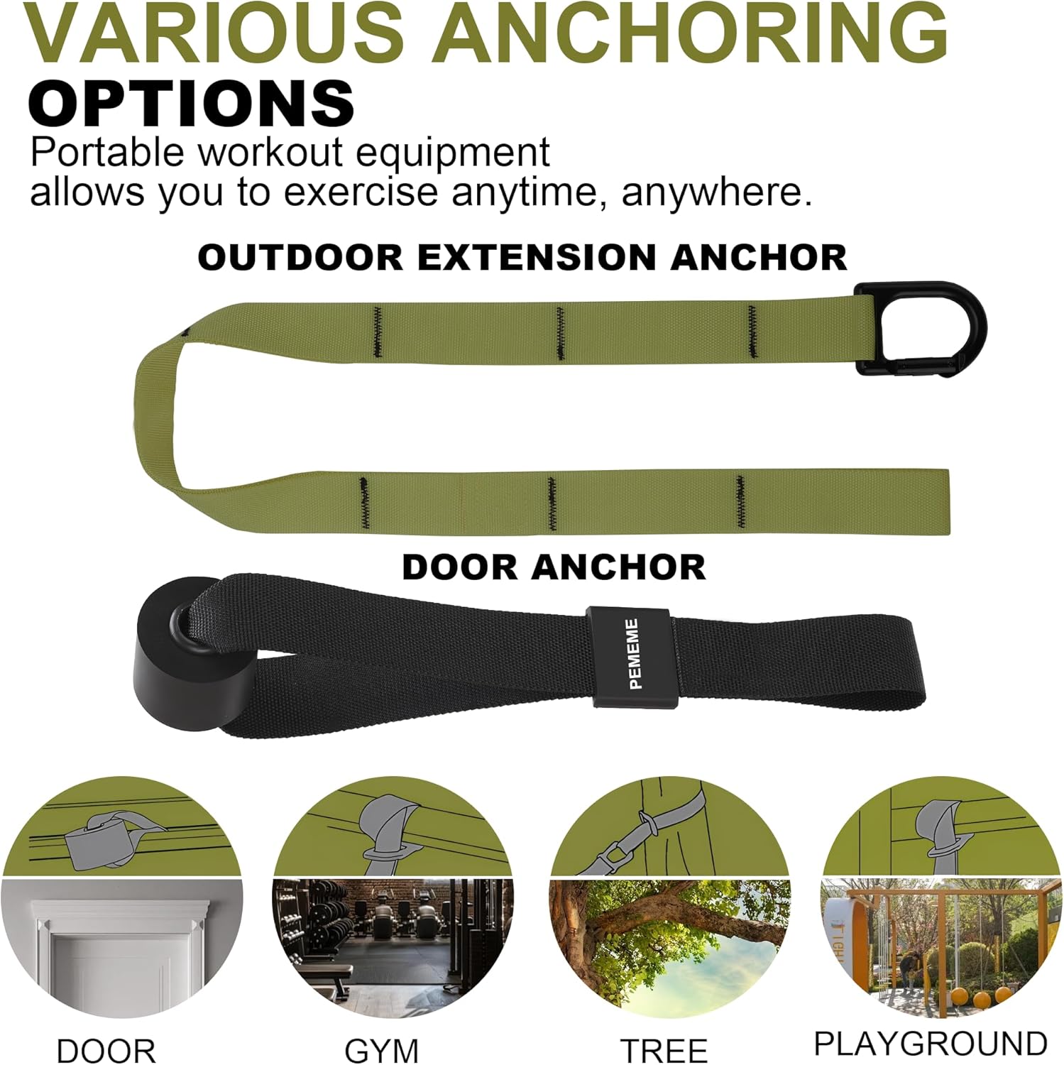 [Complete Exercise Solution] – Start or enhance your home gym with our versatile kit that includes an adjustable door anchor, extension straps, and two durable handles. Suitable for both indoor and outdoor workouts, it’s designed to attach securely to any robust fixture, providing a comprehensive range of exercises to enhance your strength and fitness.