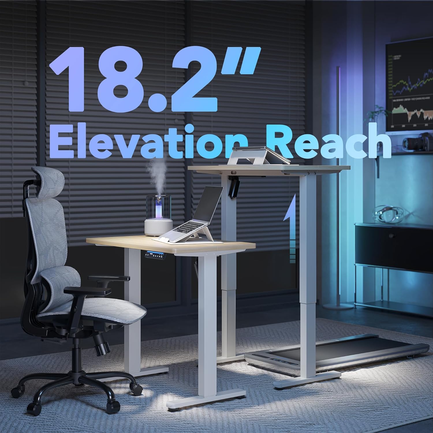 SMART CONTROL: Experience the new smart electric standing desk that uses an App(Ergo BQ) to find your perfect sit-stand height. Enjoy hands-free control with Alexa, Google, and Siri for effortless ergonomic comfort.