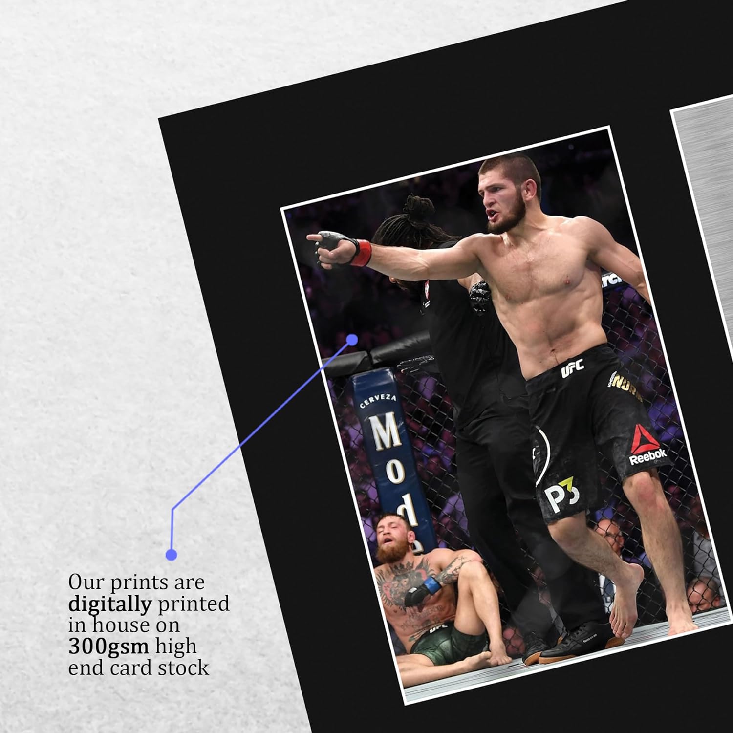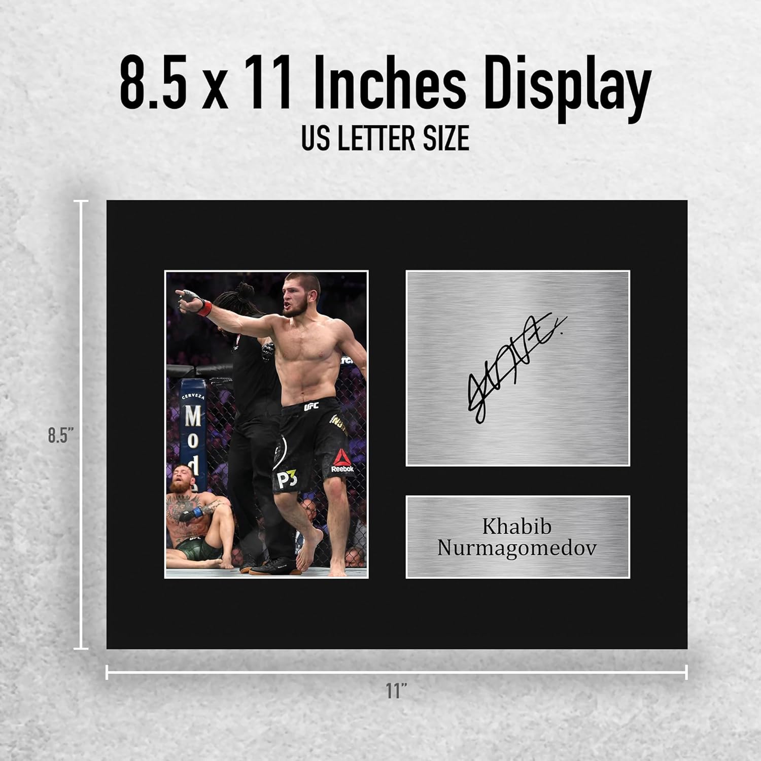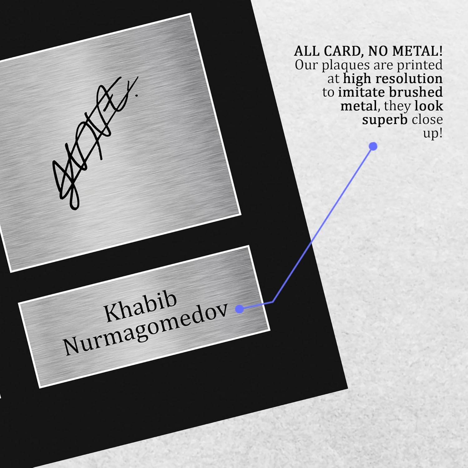 Professionally made in our studio, this Khabib Nurmagomedov MMA display comes with a high-quality picture alongside printed copies of their famous autograph signature. Mounted in a matt black using an acid-free display board, it’s perfectly finished with an autographed name in a silver, mock printed plaque.Lightweight, but of the highest quality, these make the ideal Christmas/Birthday gift for fans of all ages, and best of all, it definitely won’t break the bank!