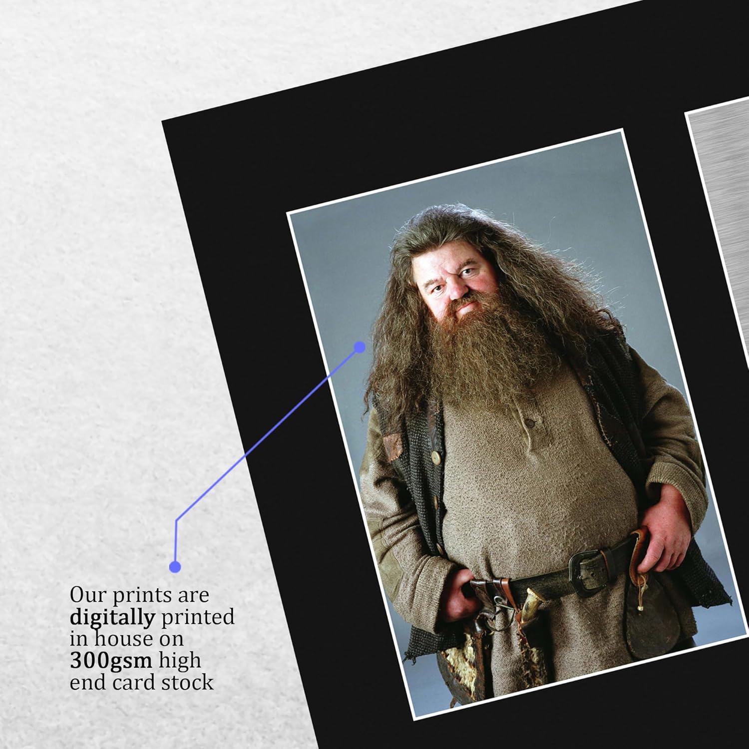 Professionally made in our studio, this Robbie Coltrane display makes for an ideal gift idea. This laser printed quality photograph is mounted in a precision cut three windowed acid-free matt black display board. To the left of the display there is the main image. To the right of the display there are two metallic effect plaque areas for printed copies of the name and autograph signature. These mounts also come with a ridgid backing board making them very sturdy and can be displayed or hung as they are. Alternatively we offer a framed version too. Lightweight, but of the highest quality, these make the ideal Christmas/Birthday gift for fans of all ages, and best of all, they definitely won’t break the bank!