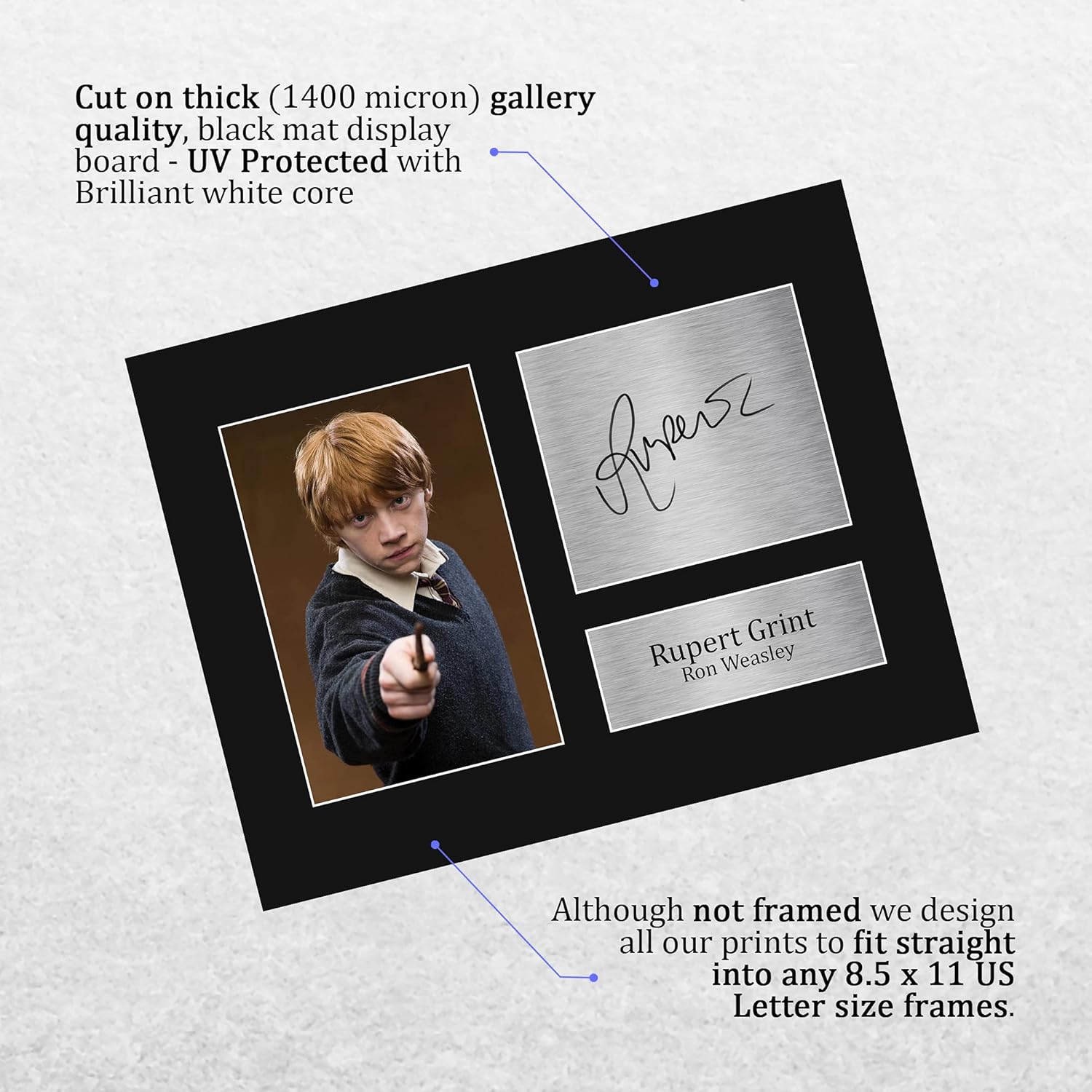 Professionally made in our studio, this Harry Potter themed display comes unframed with a high-quality picture alongside a printed copy of that famous autograph signature. Mounted in a matt black using an acid-free display board, it’s perfectly finished with the names in a silver, printed plaque. Makes the ideal Christmas/Birthday gift for fans of all ages, and best of all, it definitely won’t break the bank!
