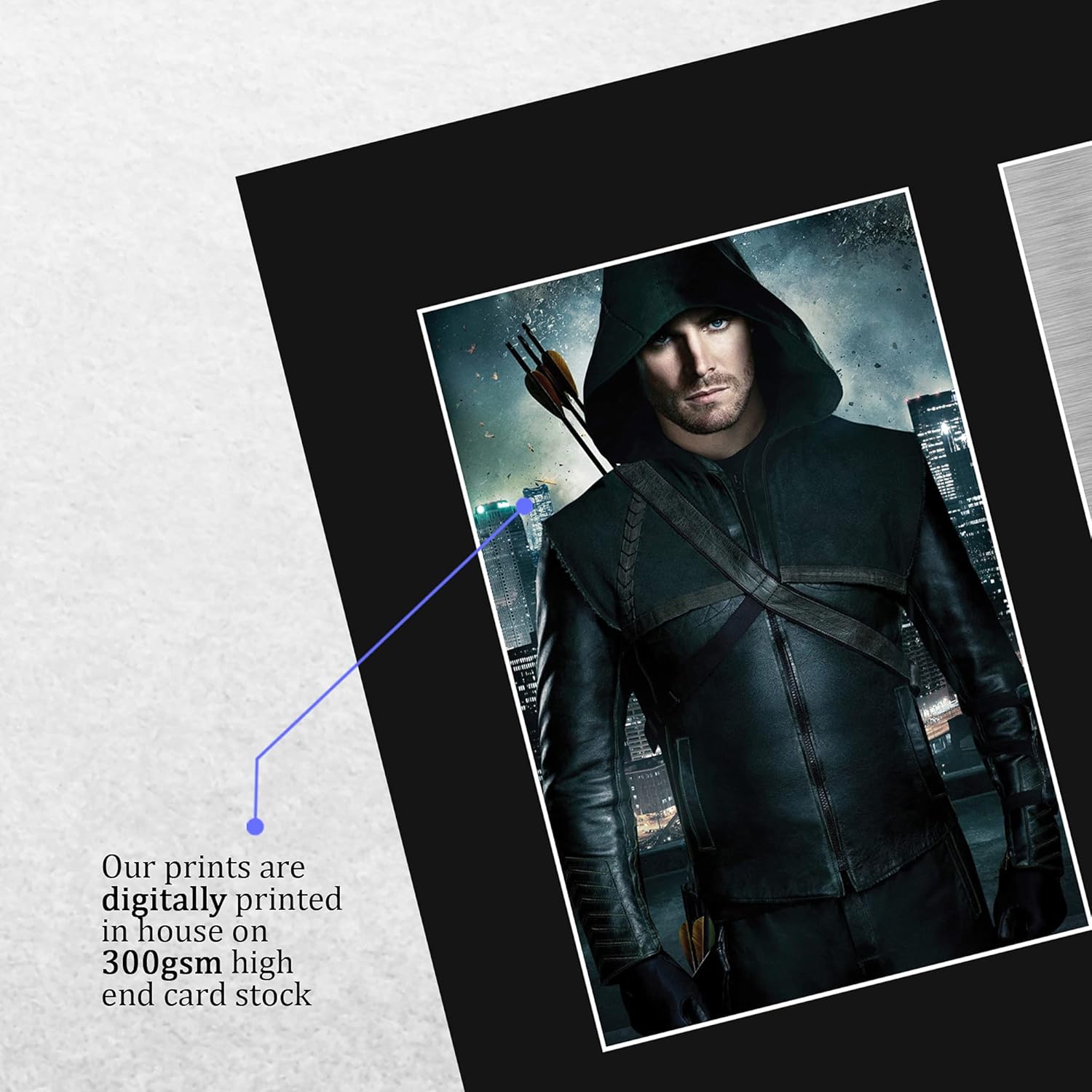 Professionally made in our studio, this US Letter Size (8.5×11 Inch) unframed Stephen Amell display makes for an ideal gift idea. This laser printed quality photograph is mounted in a precision cut three windowed acid-free matt black display board. To the left of the display there is the main image. To the right of the display there are two metallic effect plaque areas for printed copies of the name and autograph signature. These mounts also come with a ridgid backing board making them very sturdy and can be displayed or hung as they are. If you wish to frame them they will fit in any US Letter Size Frame. Alternatively we offer a framed version too. Lightweight, but of the highest quality, these make the ideal Christmas/Birthday gift for fans of all ages, and best of all, they definitely won’t break the bank!