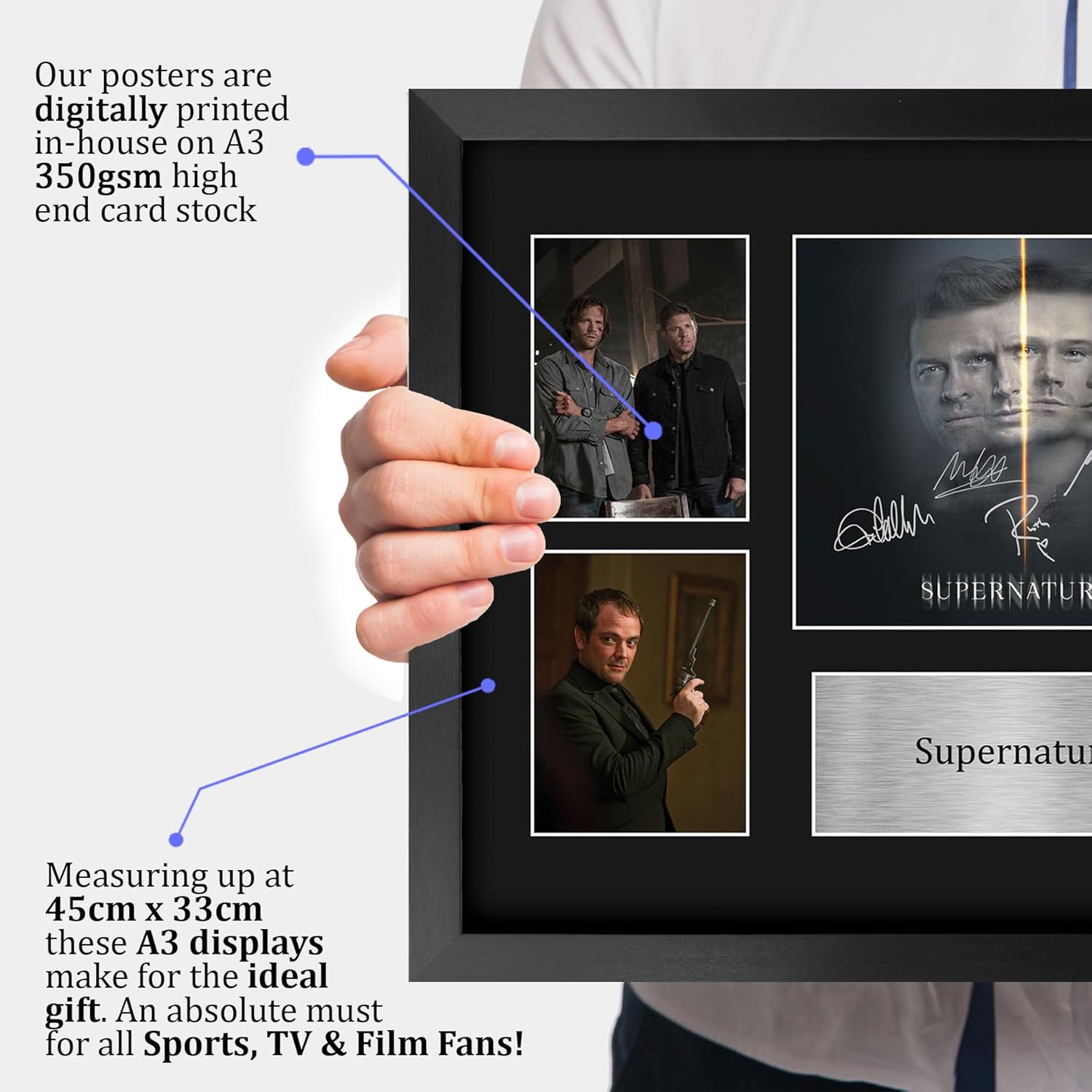 HWC Trading Supernatural Gifts Printed Signed Autograph Presentation Photo Montage Display for TV Show Fans – 16″ x 12″ Framed