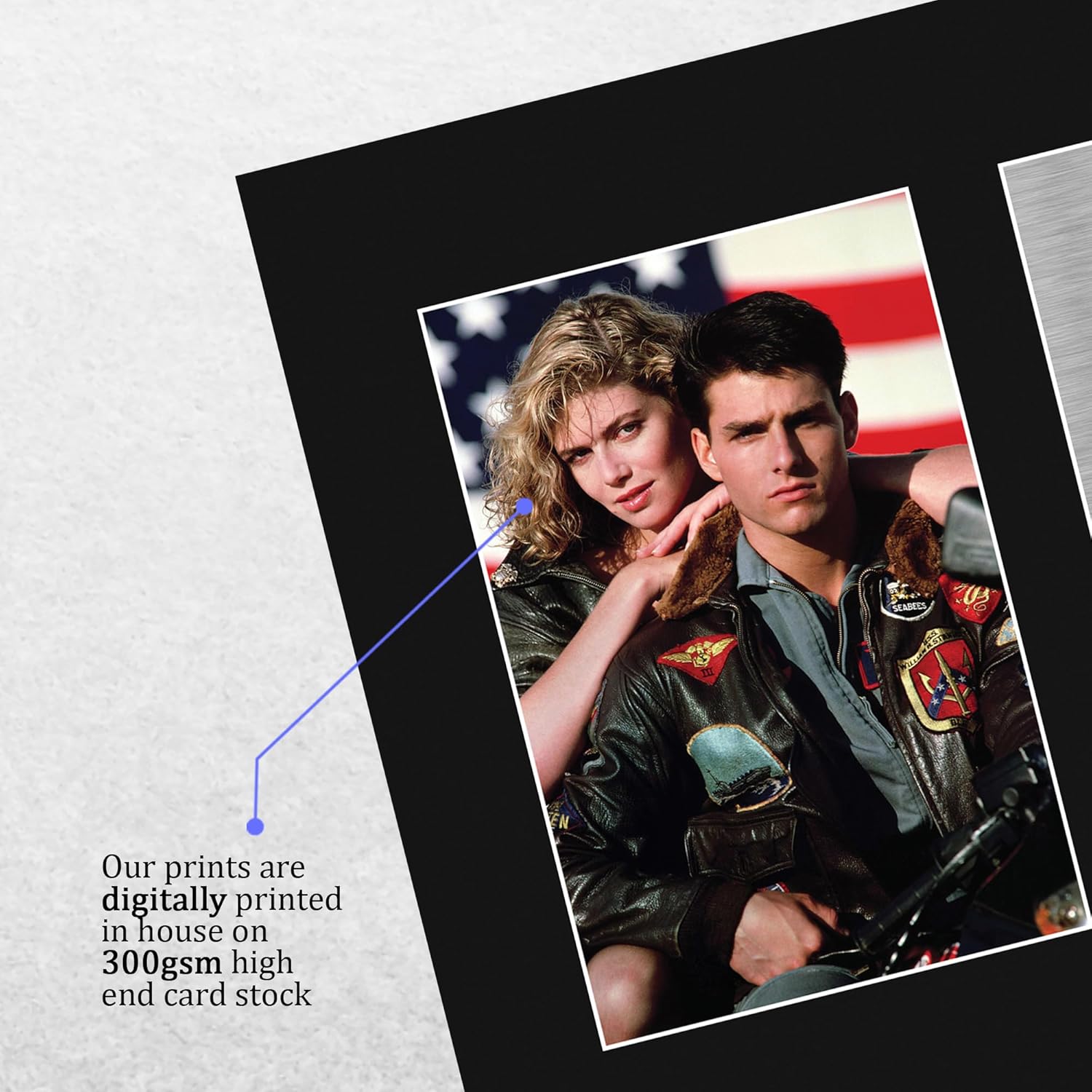 Professionally made in our studio, this Tom Cruise & Kelly McGillis display makes for an ideal gift idea. This laser printed quality photograph is mounted in a precision cut three windowed acid-free matt black display board. To the left of the display there is the main image. To the right of the display there are two metallic effect plaque areas for printed copies of the name and autograph signature. These mounts also come with a ridgid backing board making them very sturdy and can be displayed or hung as they are. Alternatively we offer a framed version too. Lightweight, but of the highest quality, these make the ideal Christmas/Birthday gift for fans of all ages, and best of all, they definitely won’t break the bank!