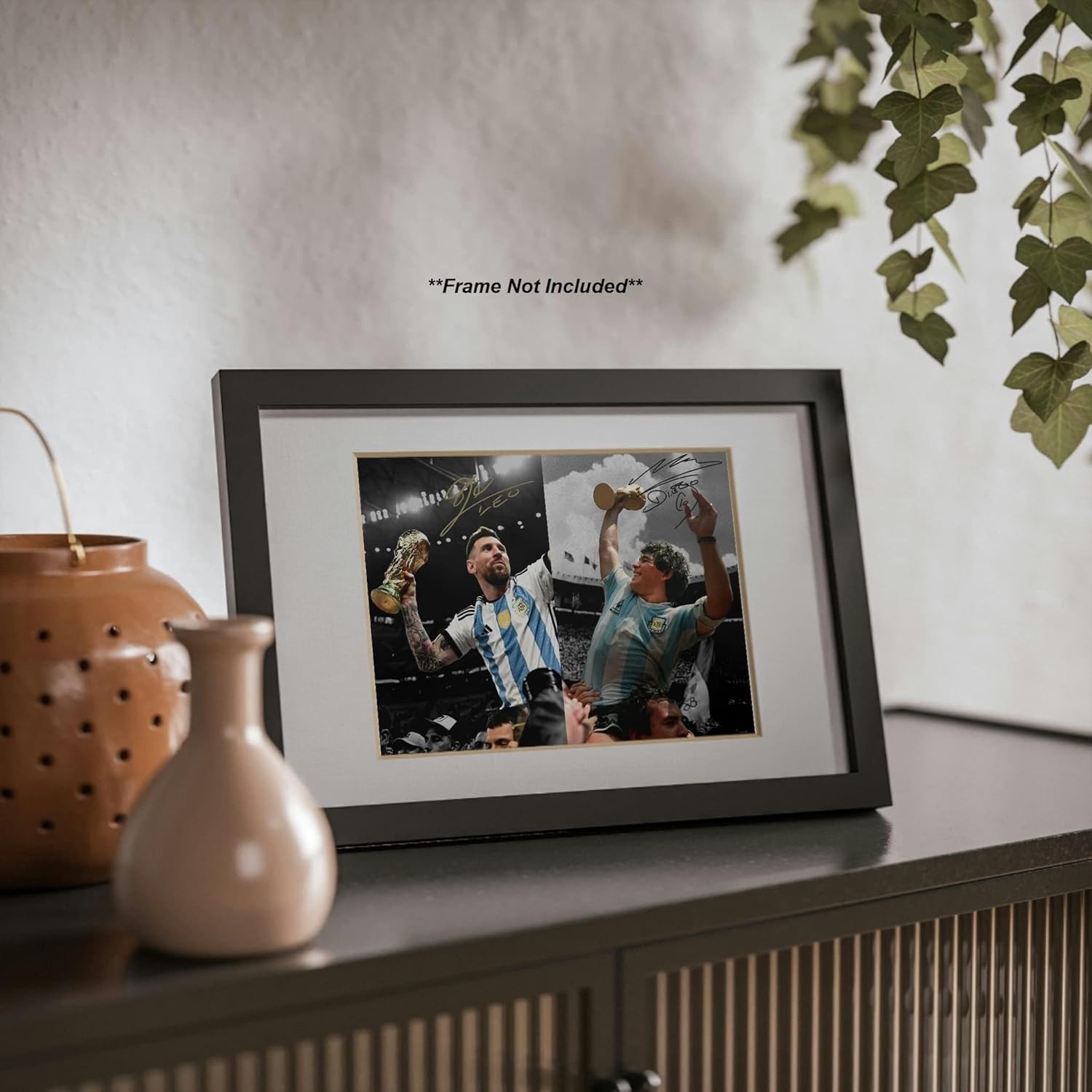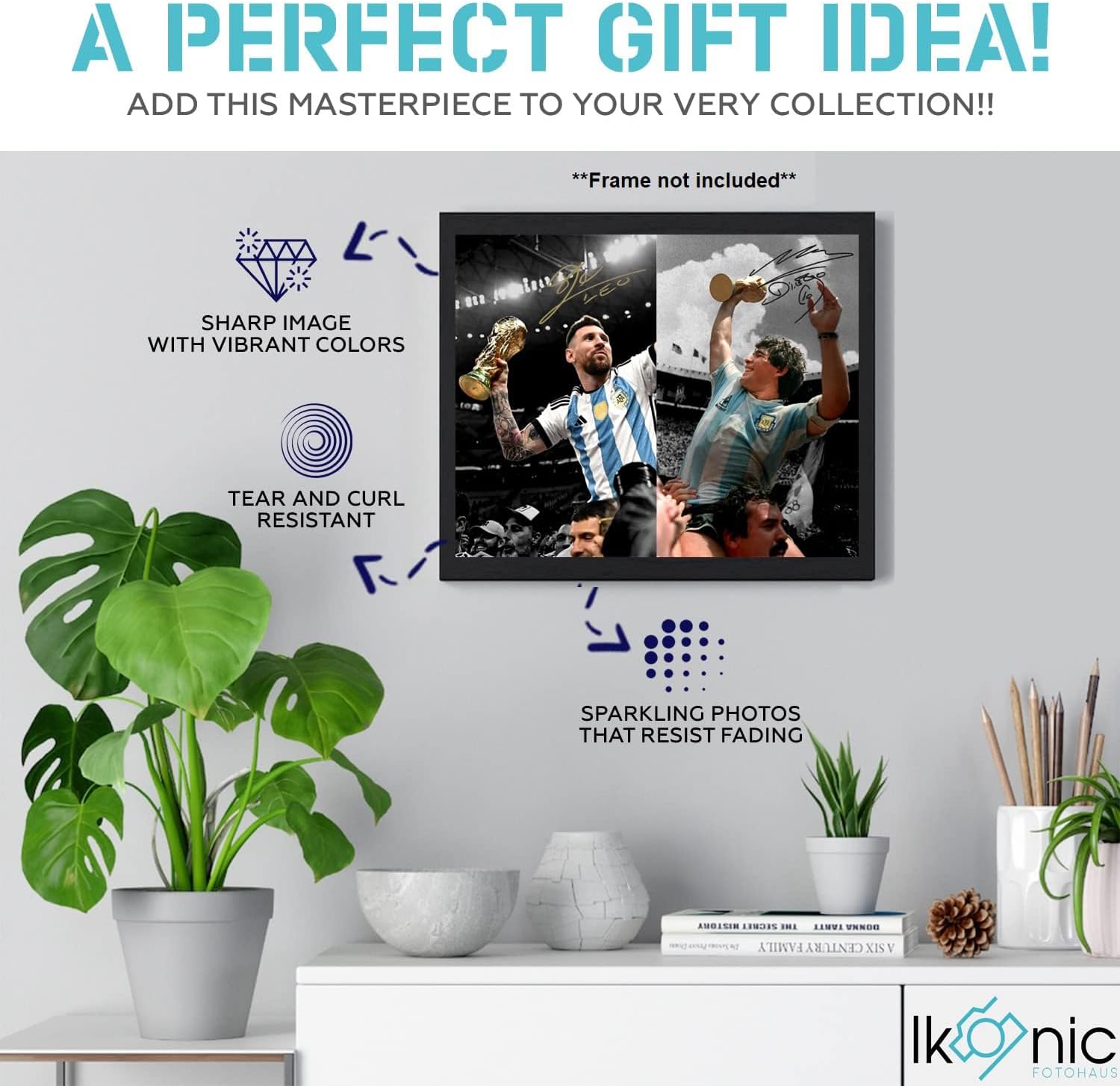 Ikonic Fotohaus Diego Maradona Lionel Messi Argentina Soccer Legends Signed Photo Autograph Print Wall Art Home Decor