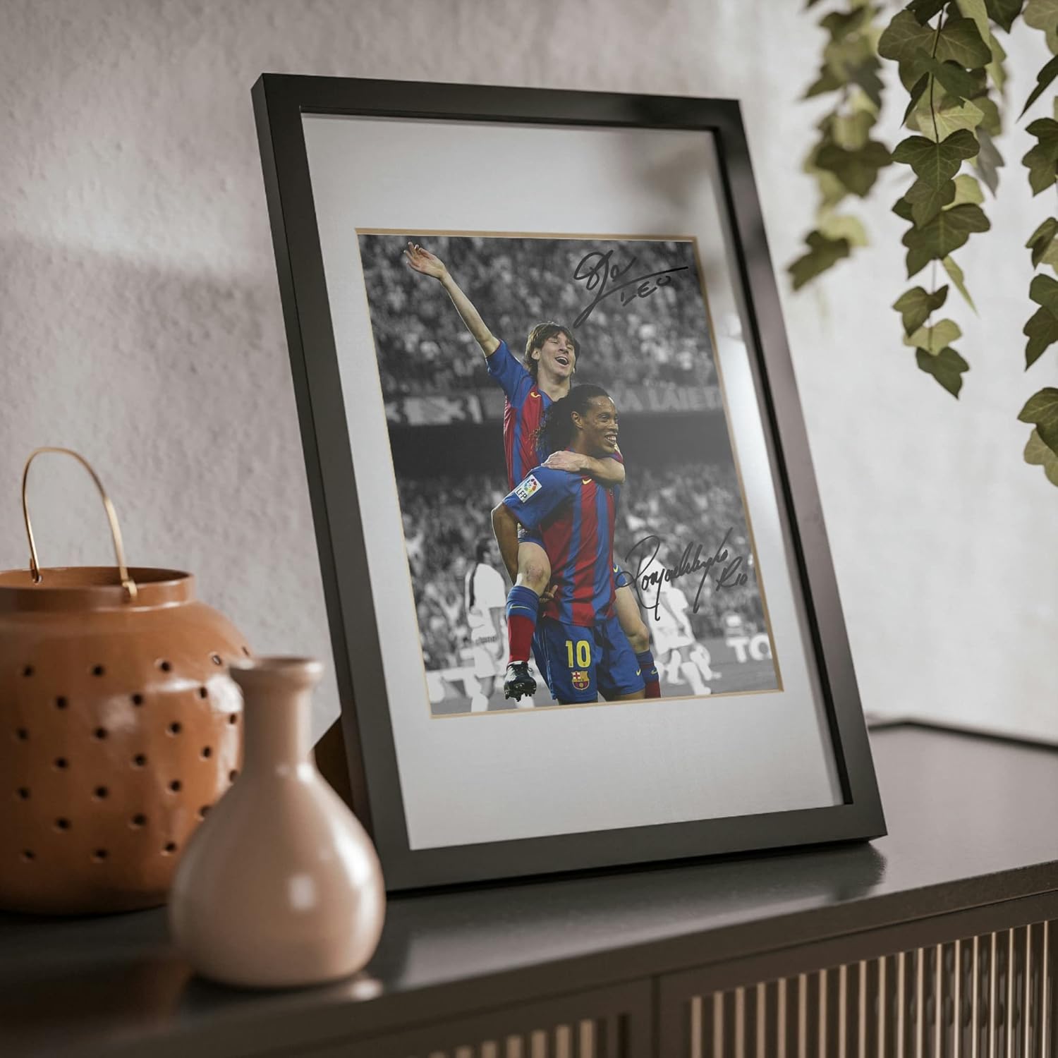 Ikonic Fotohaus Ronaldinho Lionel Messi Signed Photo Autograph Print Wall Art Home Decor